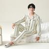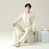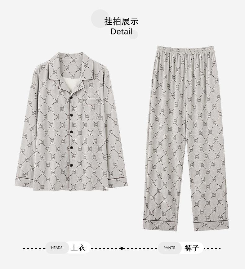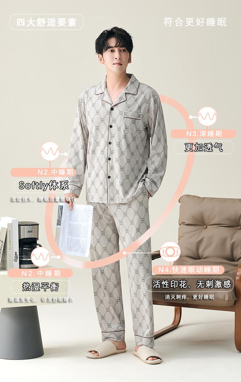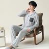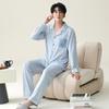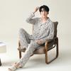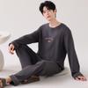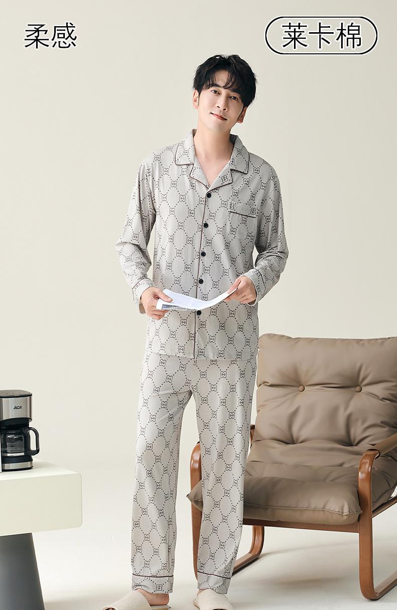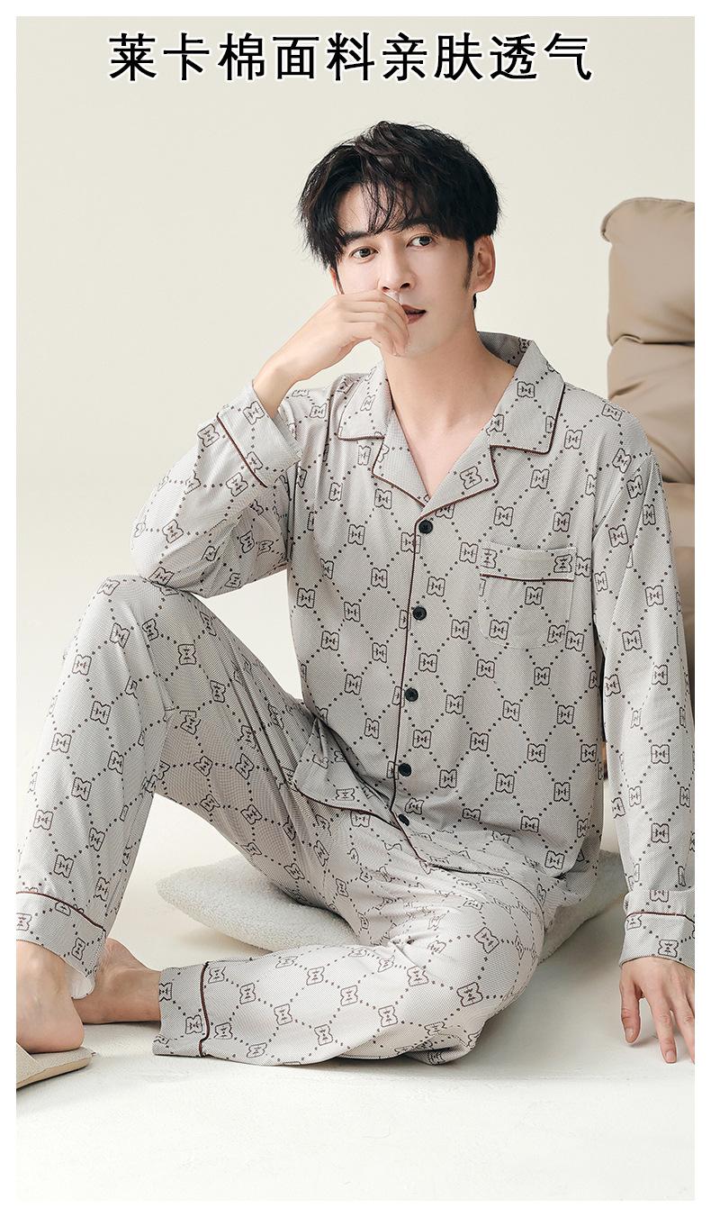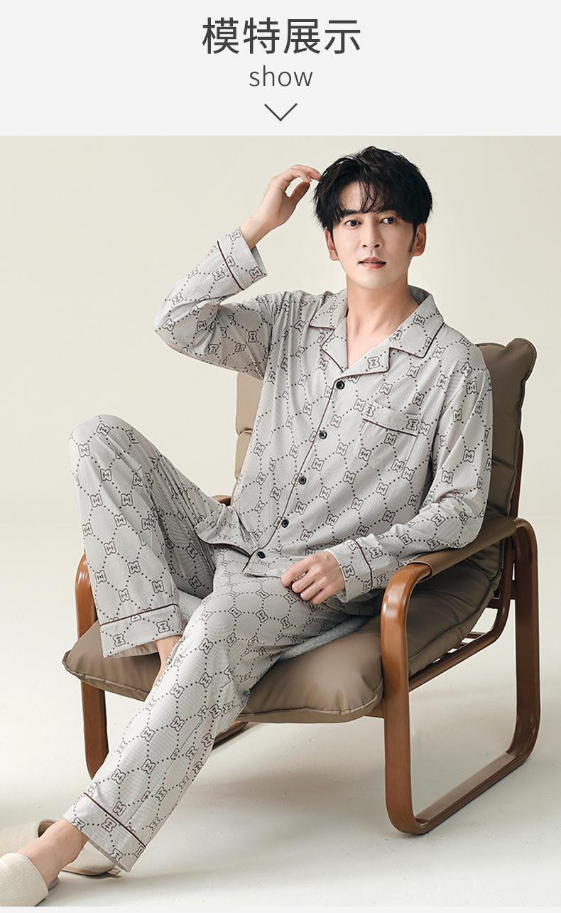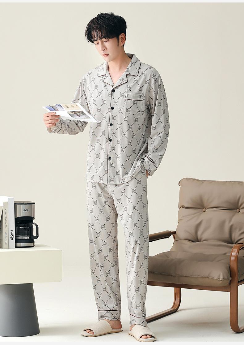 Pijama para hombre de algodón puro clase A de estilo nuevo de primavera y otoño 2025, manga larga, pantalón largo, holgado, talla grande, conjunto sencillo, ropa para el hogar