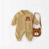 Mameluco para bebé otoño e invierno algodón acolchado bebé niño para salir ropa de algodón recién nacido versión coreana invierno más terciopelo cálido ropa para gatear con bufanda