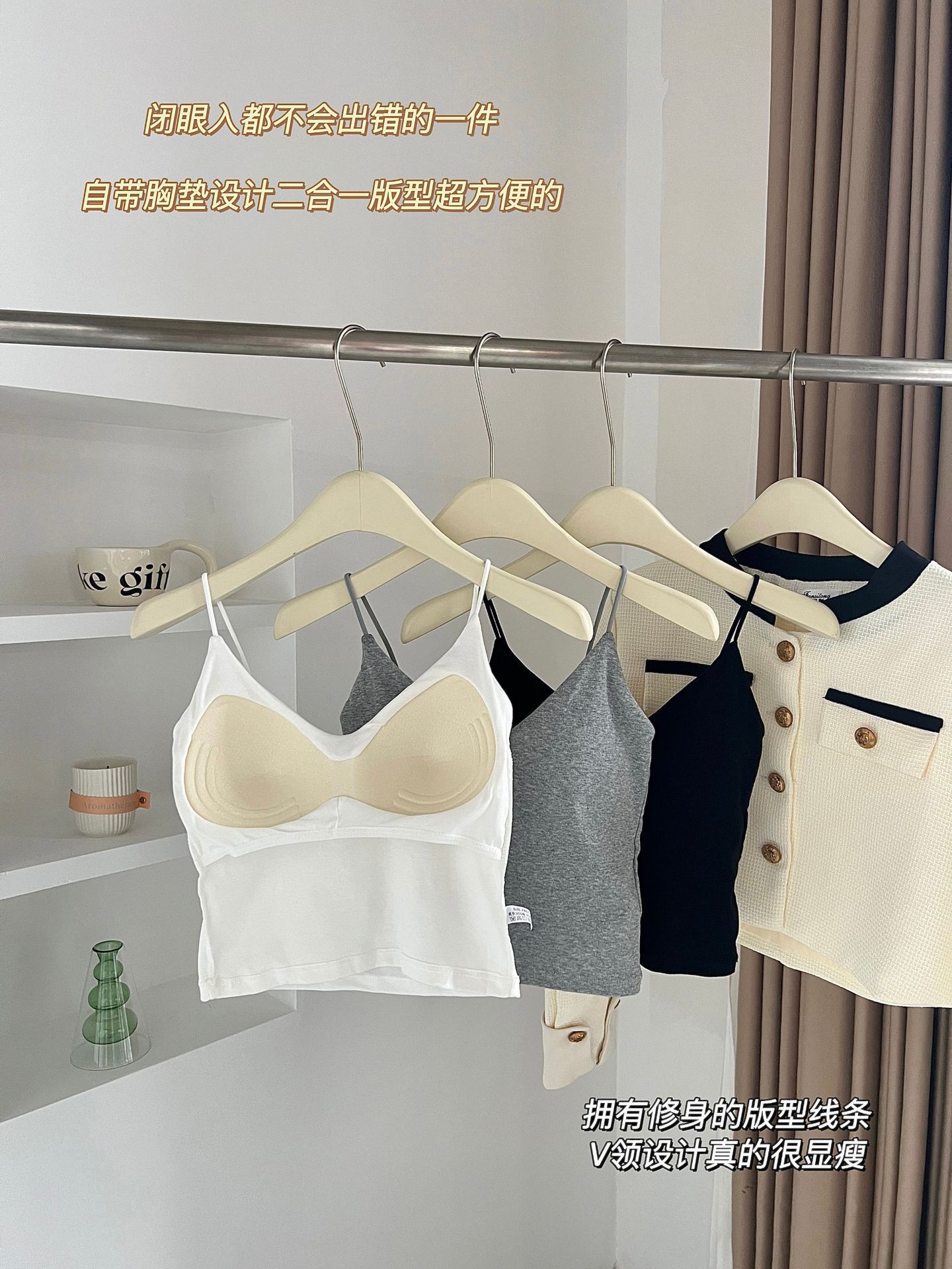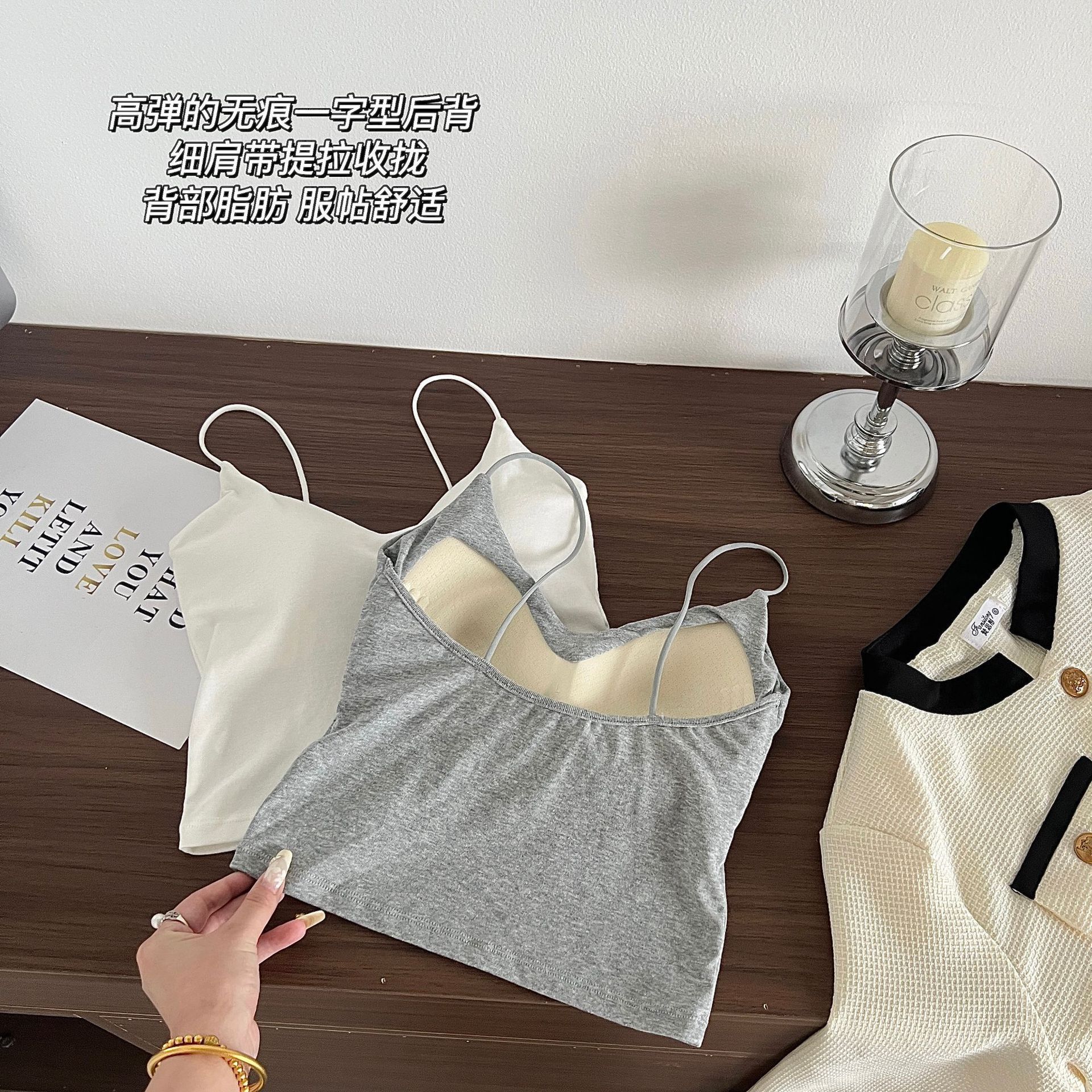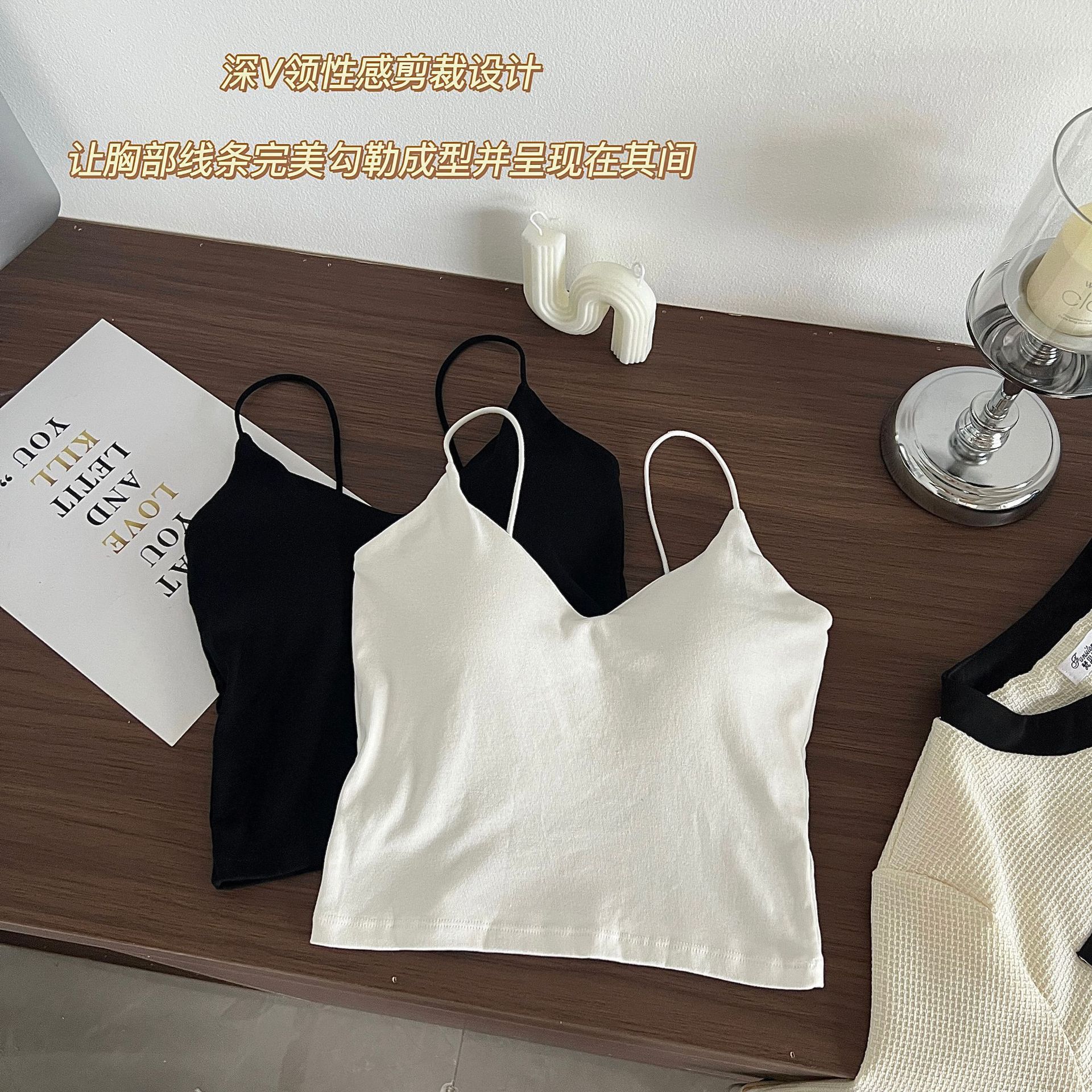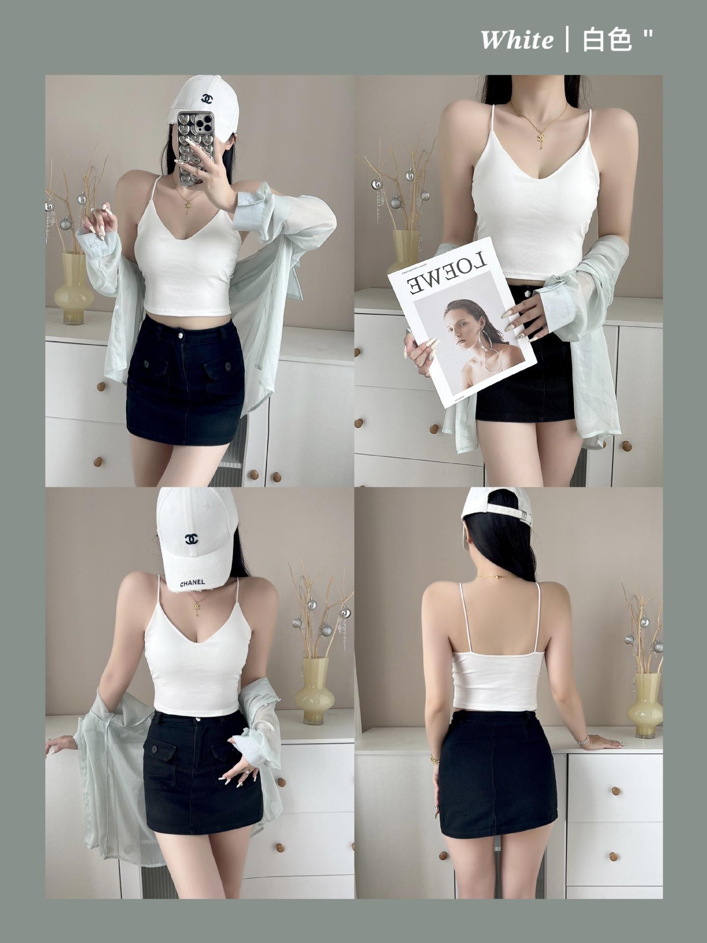 Chaleco de algodón con escote en V y almohadilla para el pecho, ajustado, tipo tubo, ropa interior sexy para la espalda.