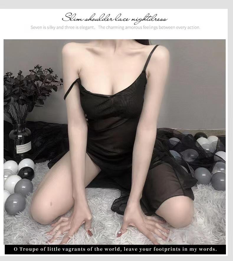 Lencería sexy para mujer, talla grande, pasión, tentación, vestido de tirantes, pijama transparente, camisón de malla