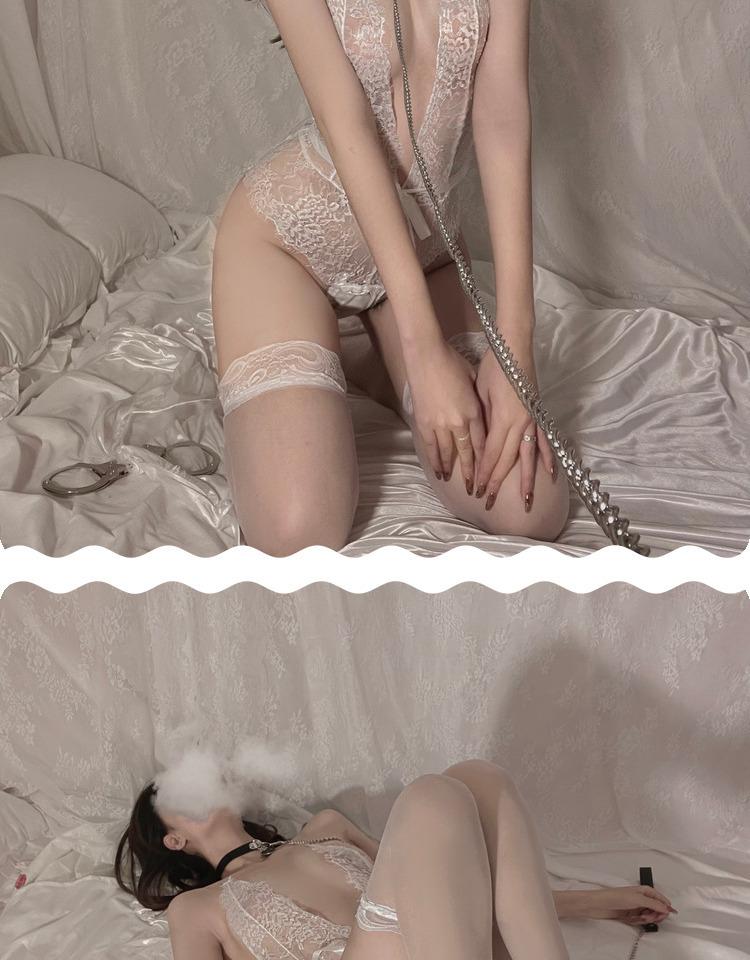 Ropa interior sexy, escote en V profundo, encaje de pestañas, cuello colgante, una pieza, Pure Desire, espalda hueca, traje ajustado de una pieza