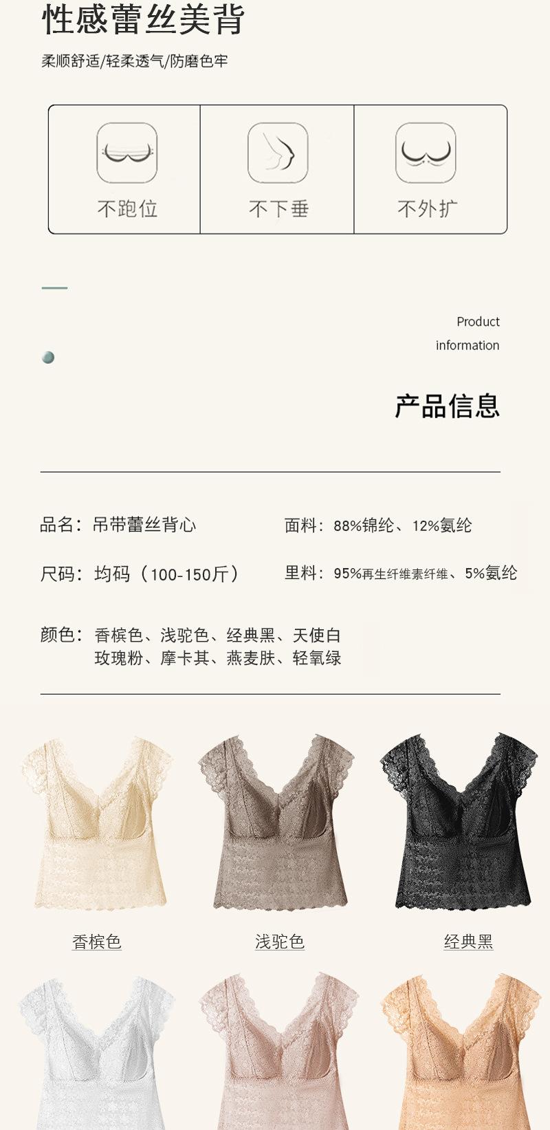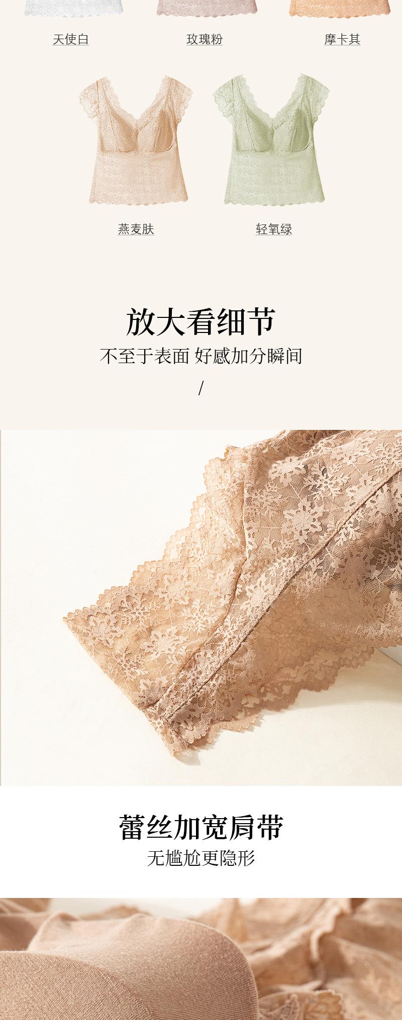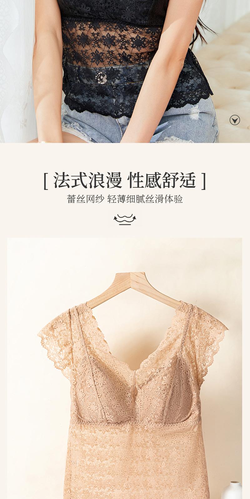 Nueva ropa interior de encaje con espalda de belleza, ropa exterior de una pieza, venta al por mayor, chaleco de manga corta con espalda de belleza, tubo anti-luz, envoltura para el pecho