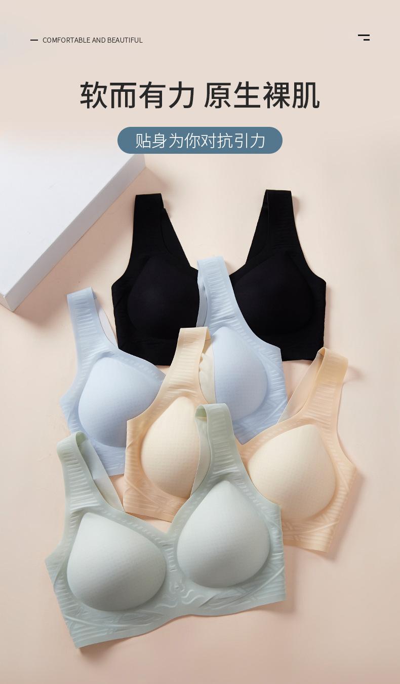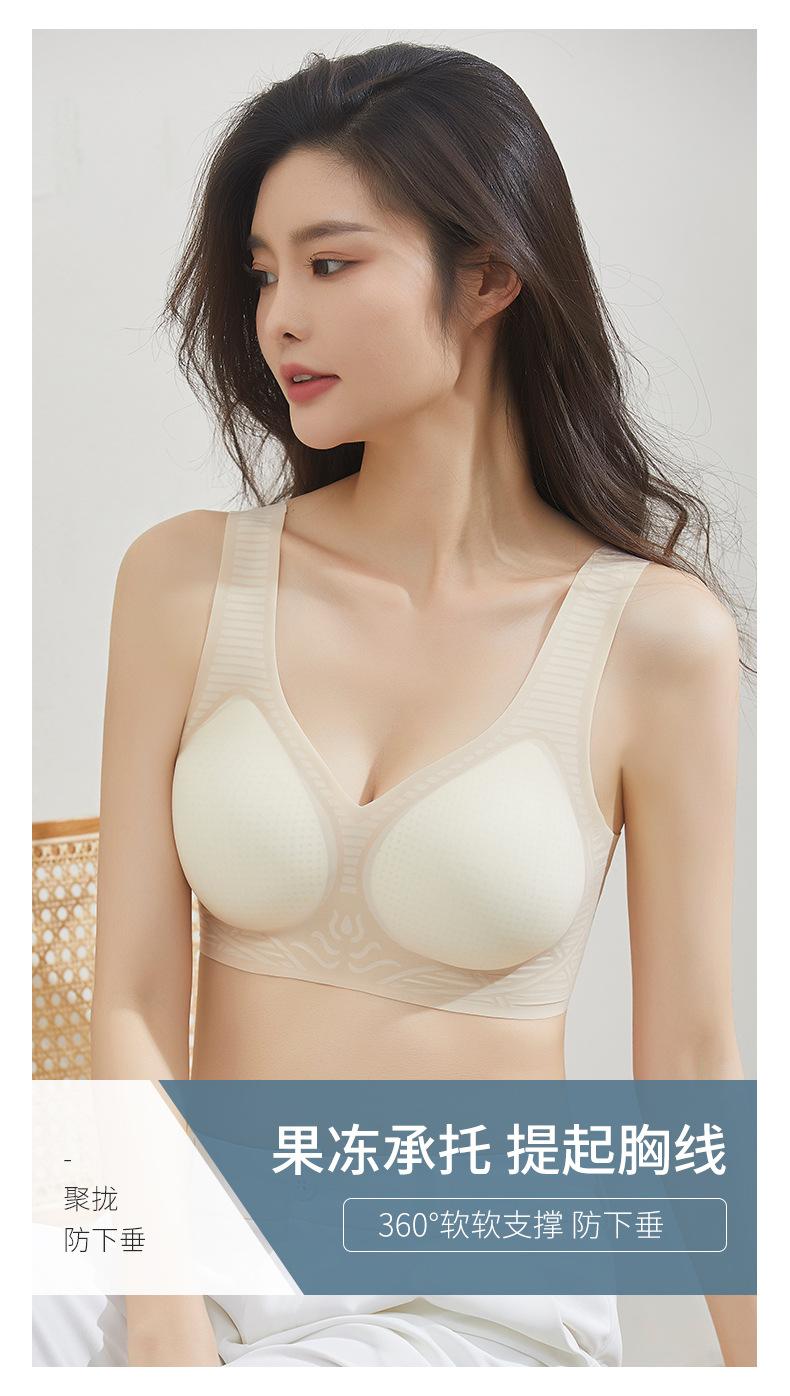 Ropa interior de soporte suave con tiras de gelatina sin costuras para mujeres con sujetador pequeño fruncido en el pecho para evitar la flacidez, sujetador de espalda hermoso, cómodo, suave y transpirable