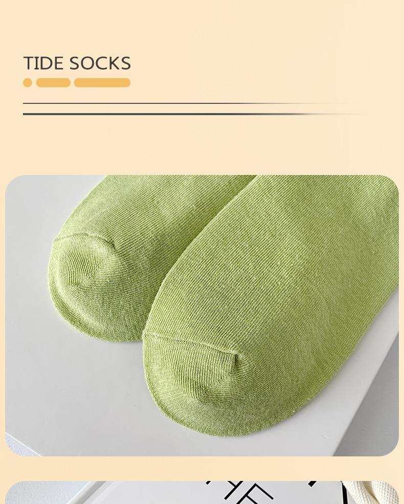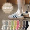 Calcetines para Mujer Primavera y Verano Nuevos Algodón Puro Media Caña Calcetines Color Caramelo Tubo Largo Apilados Calcetines Deportivos Japoneses Bordados Simples Modernos