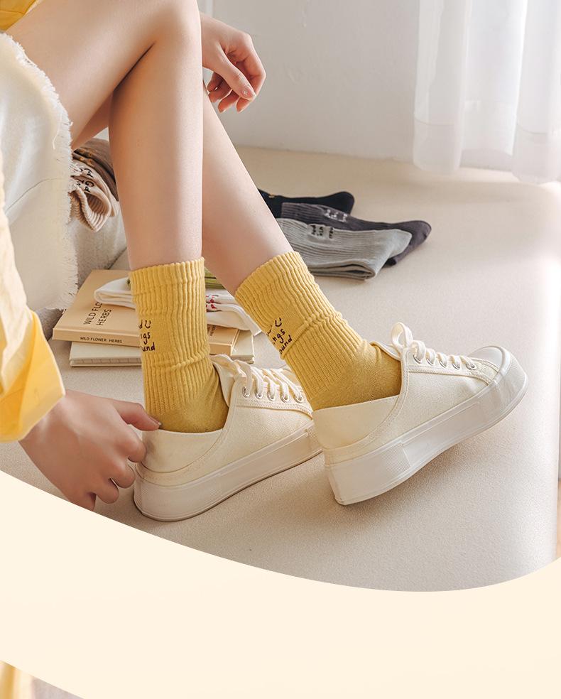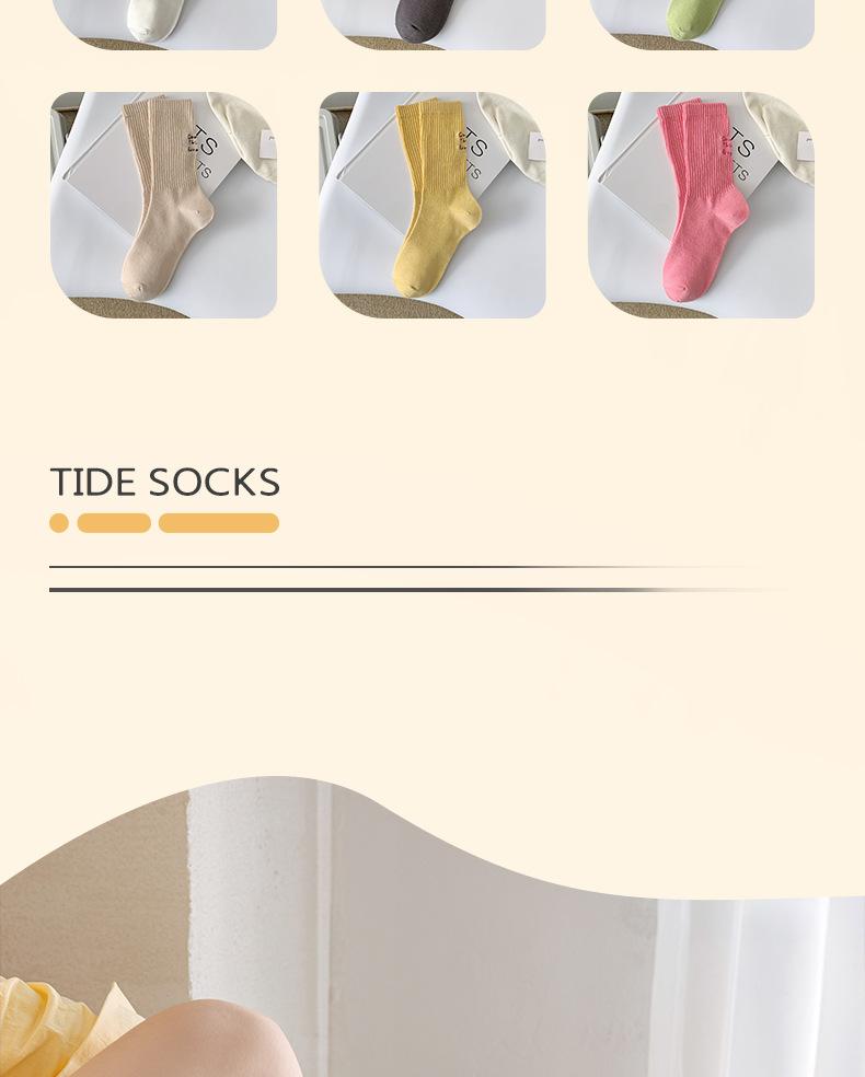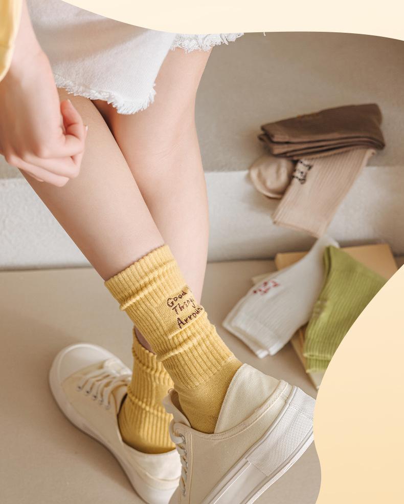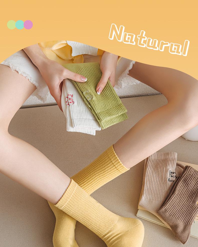 Compra Calcetines para Mujer Primavera y Verano Nuevos Algodón Puro Media Caña Calcetines Color Caramelo Tubo Largo Apilados Calcetines Deportivos Japoneses Bordados Simples Modernos al por mayor en Joom.pro