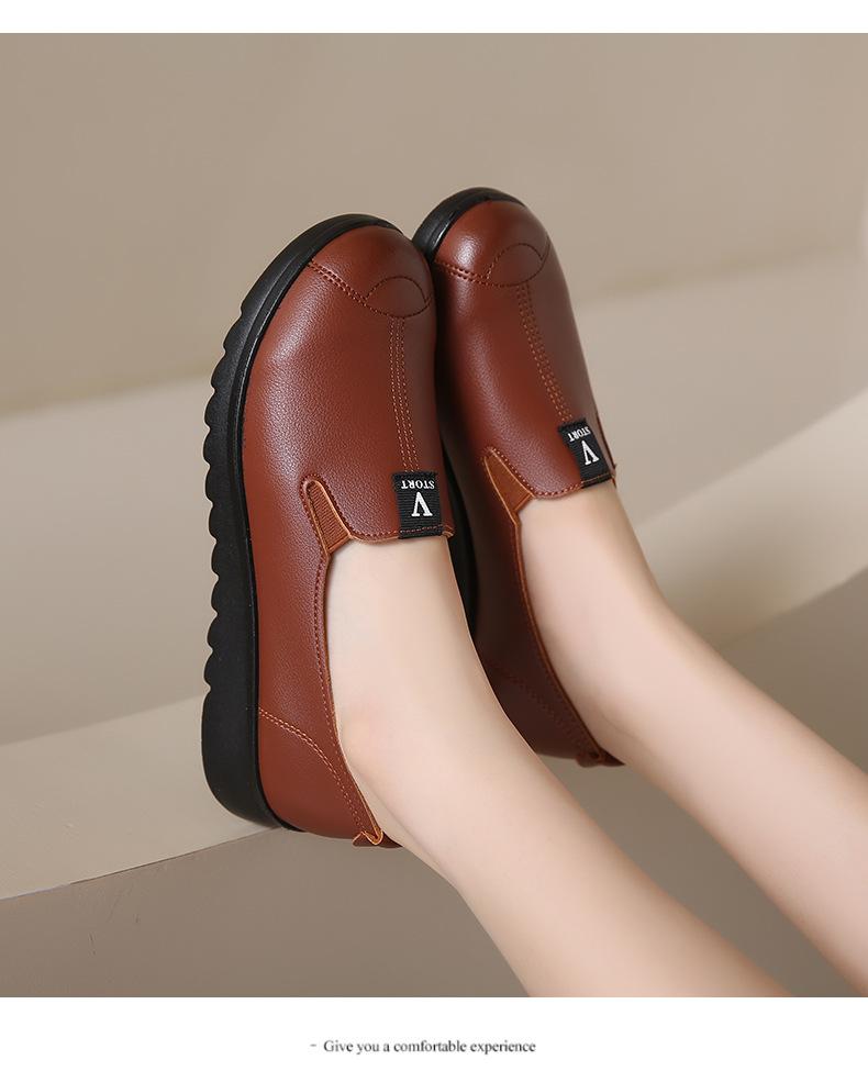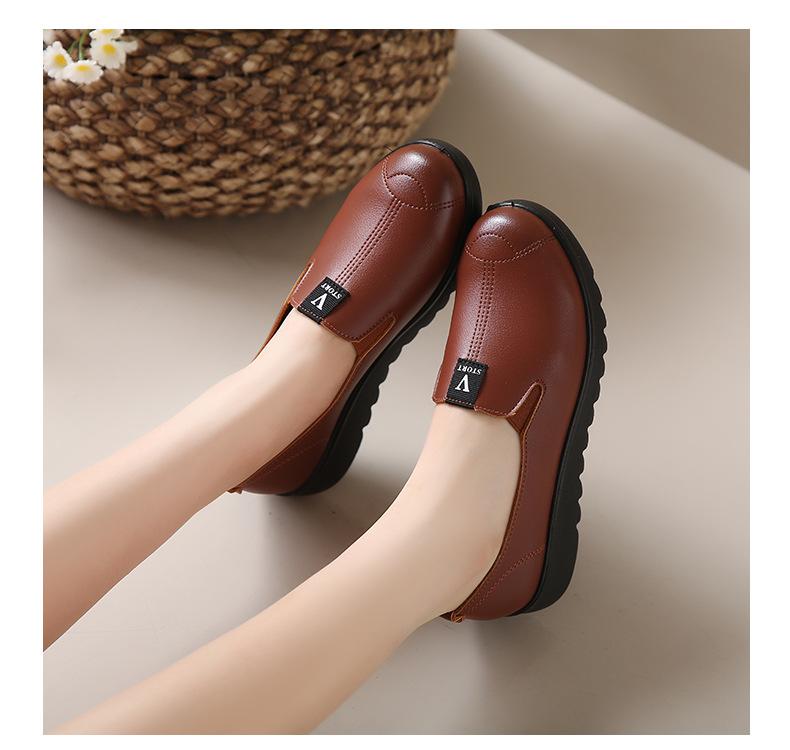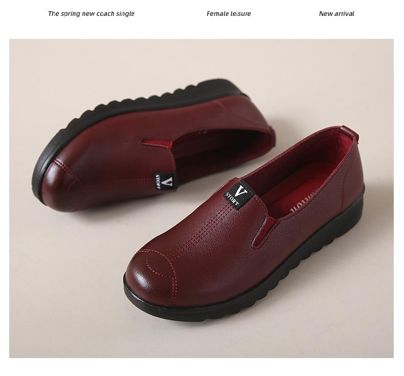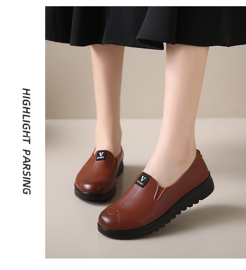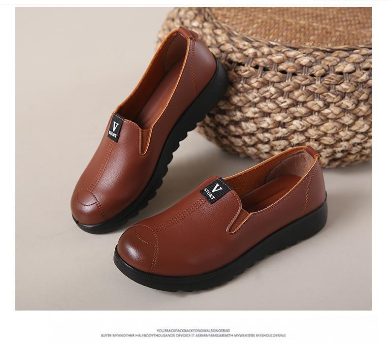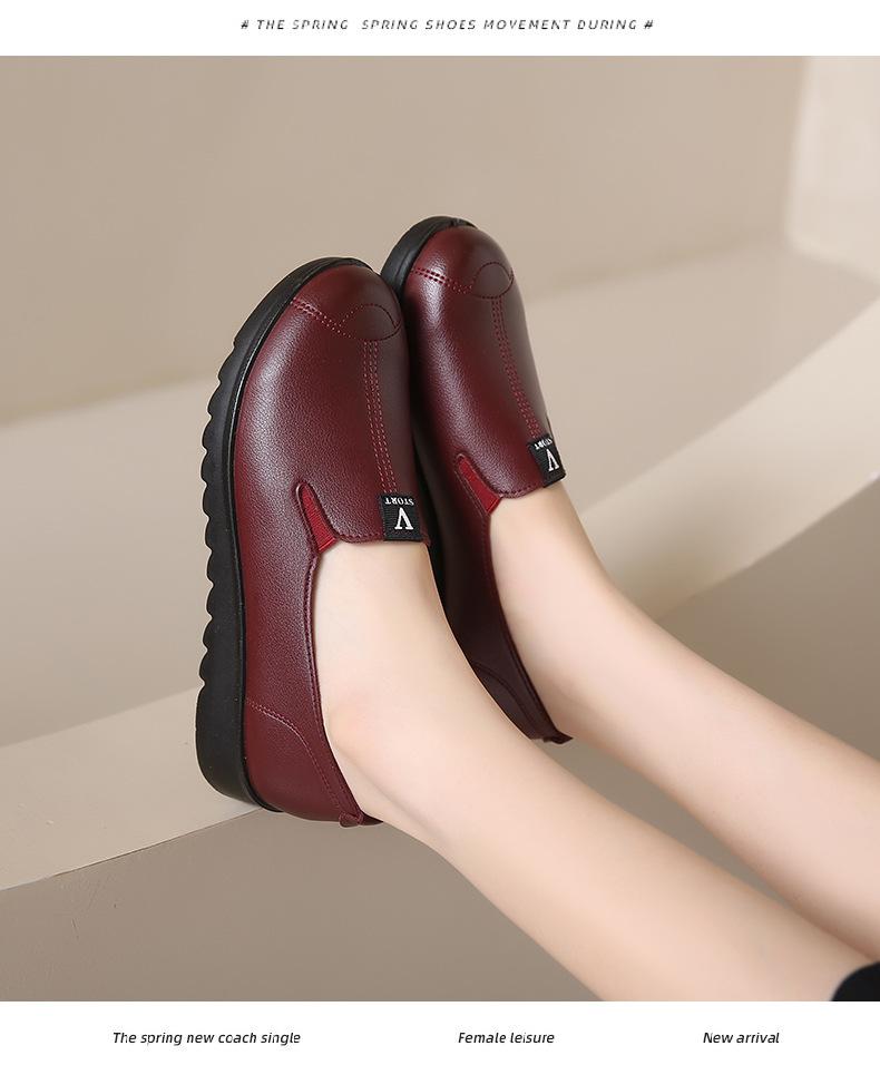 Zapatos de Mujer de Mediana Edad y Ancianas Primavera y Verano Nuevos Zapatos Casuales de Cuero para Exterior Zapatos Individuales de Corte Bajo Suela Suave Slip-On Cómodos Zapatos de Madre