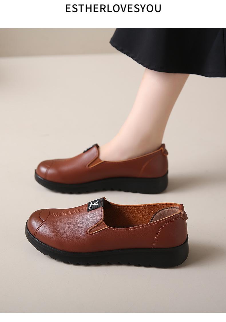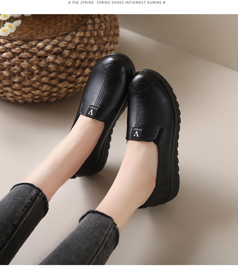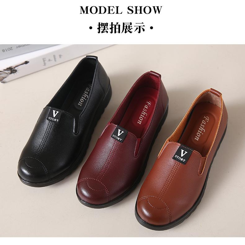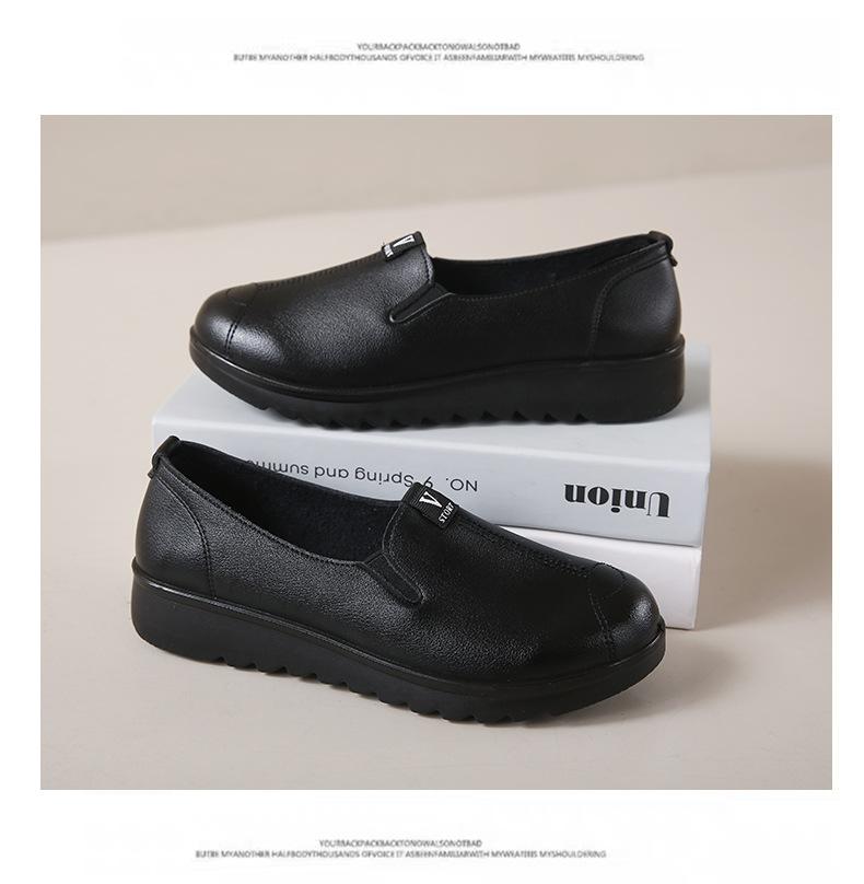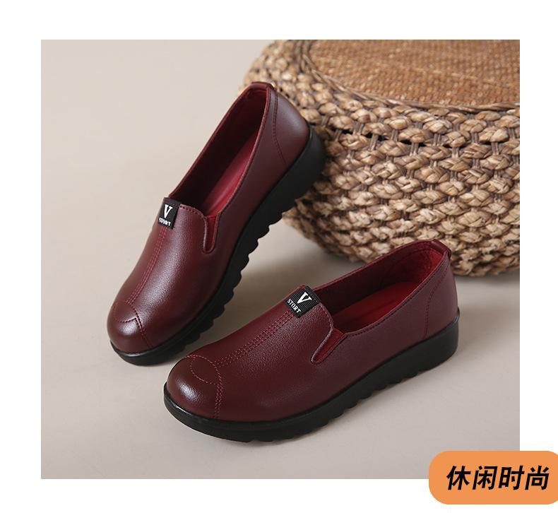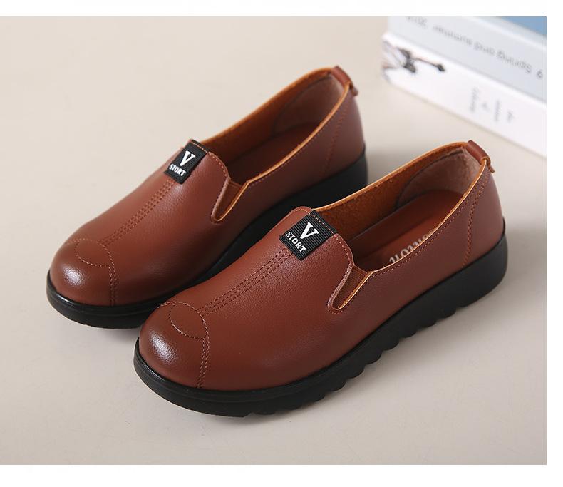 Zapatos de Mujer de Mediana Edad y Ancianas Primavera y Verano Nuevos Zapatos Casuales de Cuero para Exterior Zapatos Individuales de Corte Bajo Suela Suave Slip-On Cómodos Zapatos de Madre