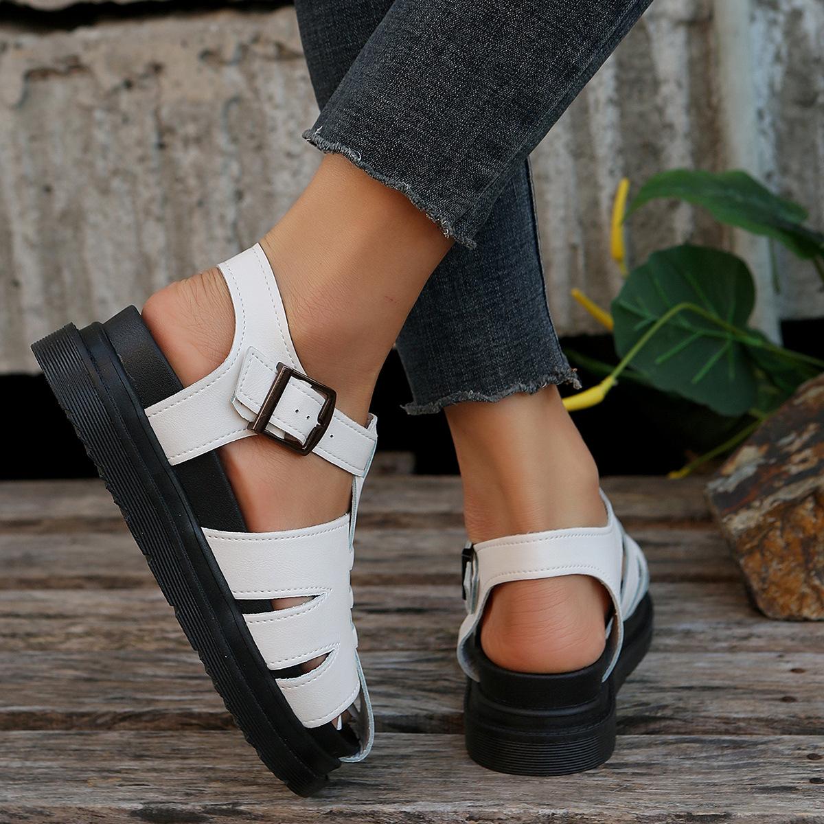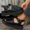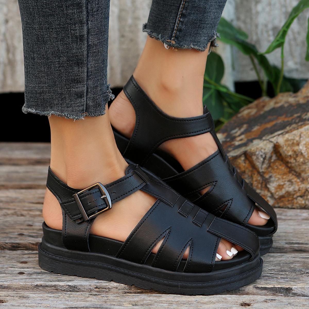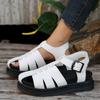 Sandalias nuevas de primavera y verano 2024 de talla grande de comercio exterior para mujer, estilo casual europeo y americano, con punta cerrada y hebilla tejida, sandalias romanas para mujer