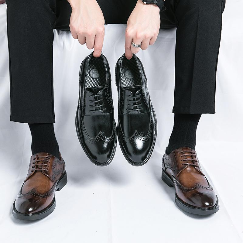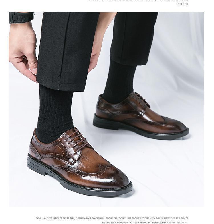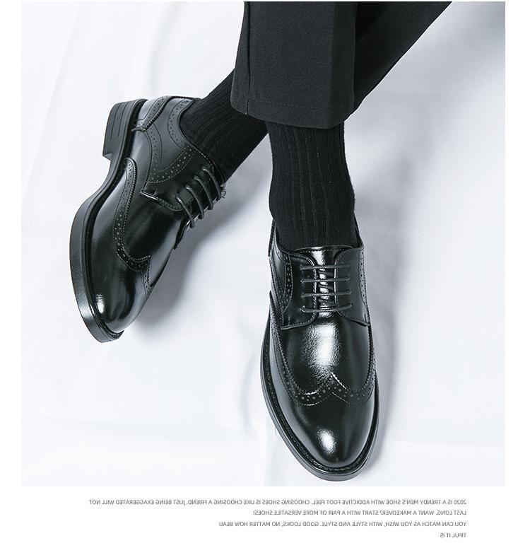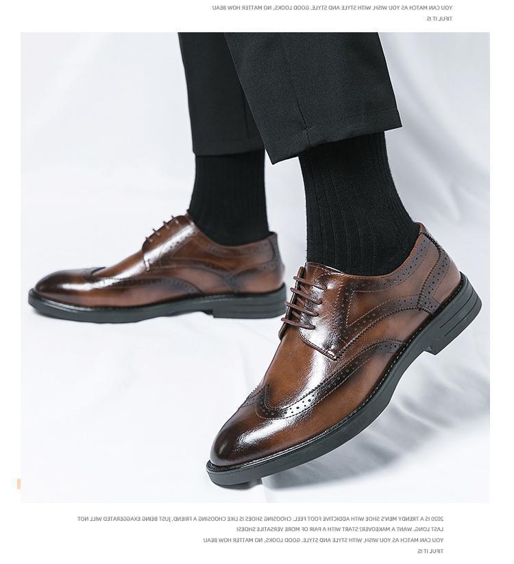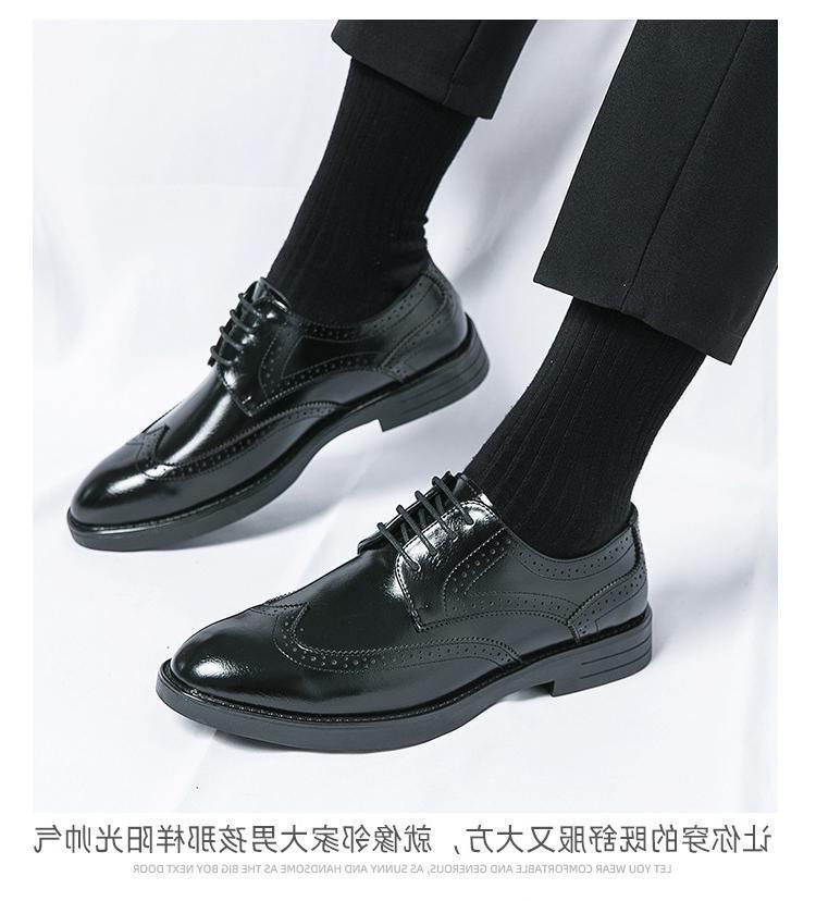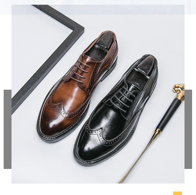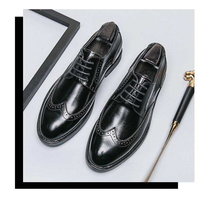 Zapatos de hombre, zapatos de cuero de talla grande transfronterizos, zapatos de vestir de negocios de moda, zapatos de novio de tendencia con punta tallada británica Brock.