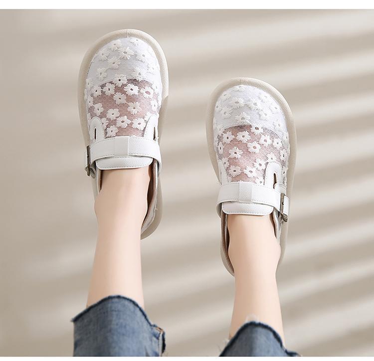 Compra Sandalias Baotou para Mujer Verano para Exterior Combinan con Todo Slip-on Planas Antideslizantes Trabajo de Oficina Zapatos de Malla para Mujer Superficie de Malla Transpirable al por mayor en Joom.pro