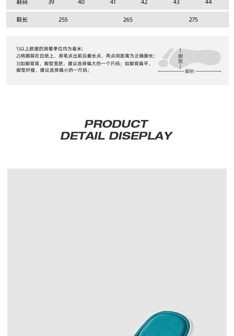 250 (39-40 yards), 260 (41-42 yards), 270 (suitable for size 43-44)