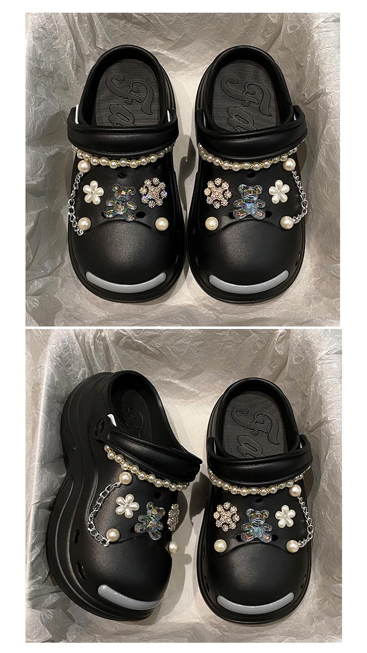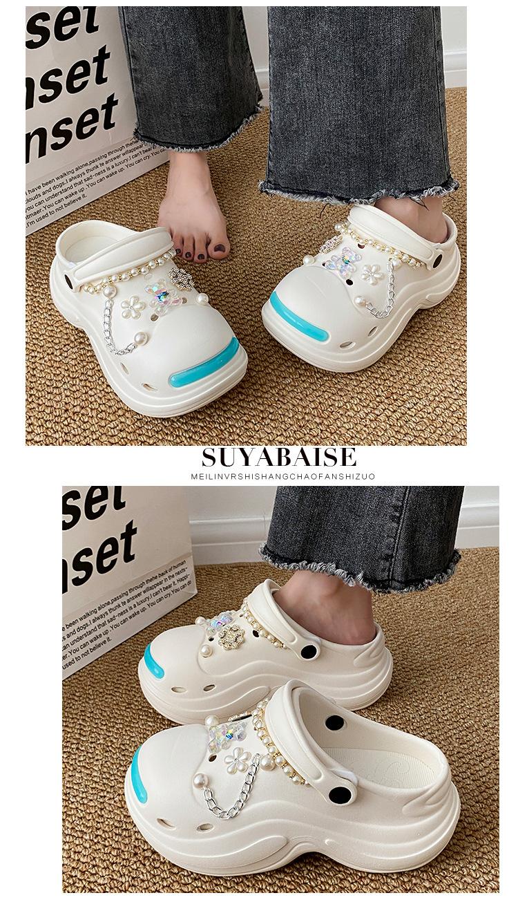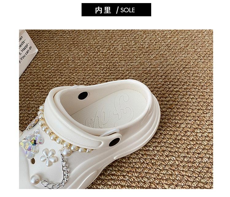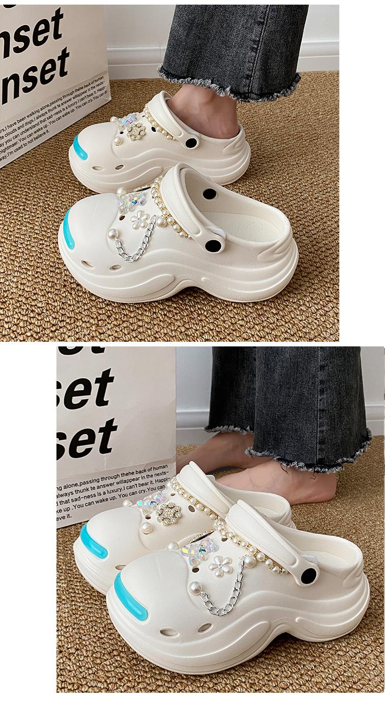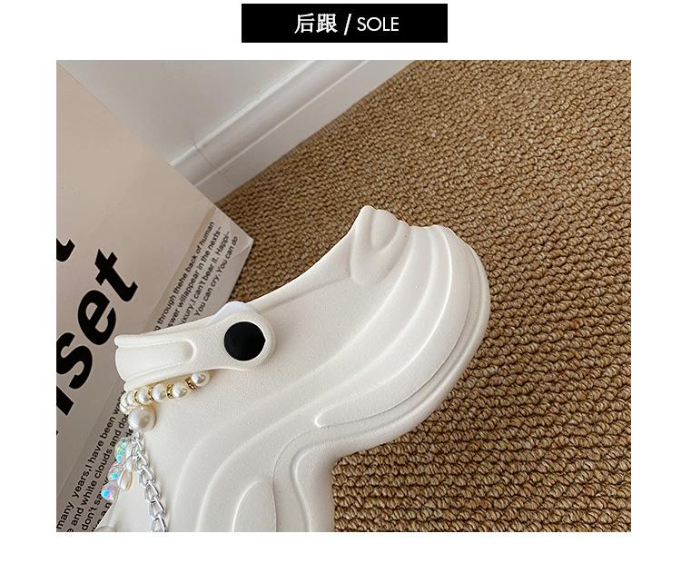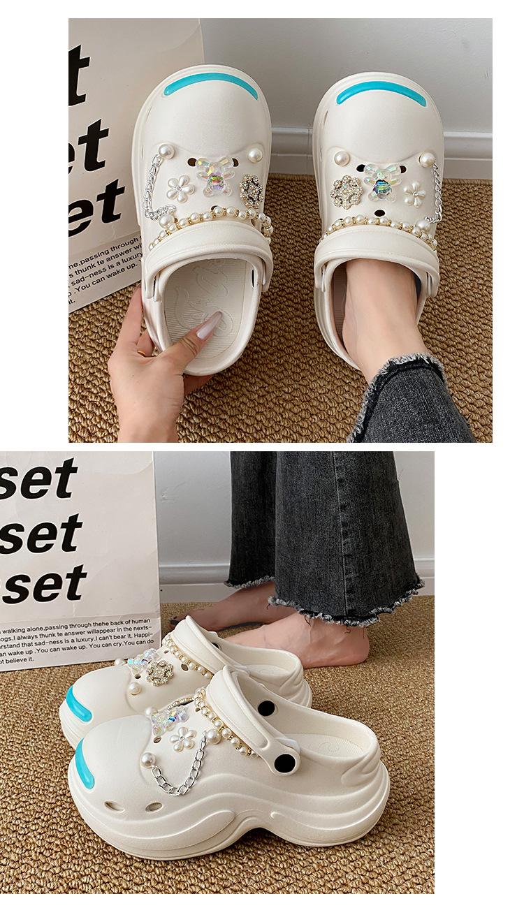 Zapatos de Mujer de Alta Gama con Pedrería de Perlas de Industria Pesada 2024 Verano Nuevo Zapatillas de Plataforma Gruesa Zapatos con Agujeros de Doble Uso
