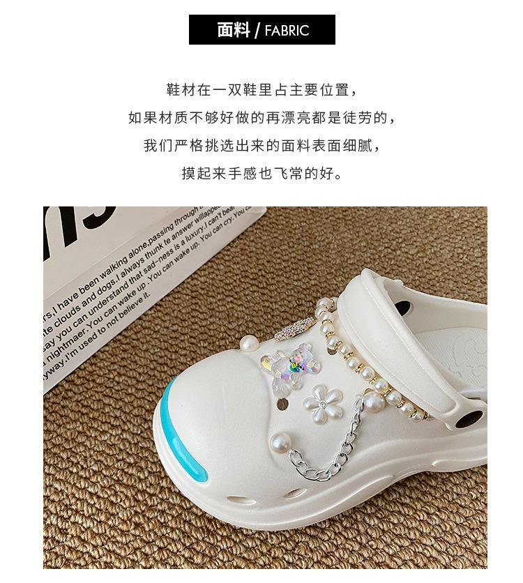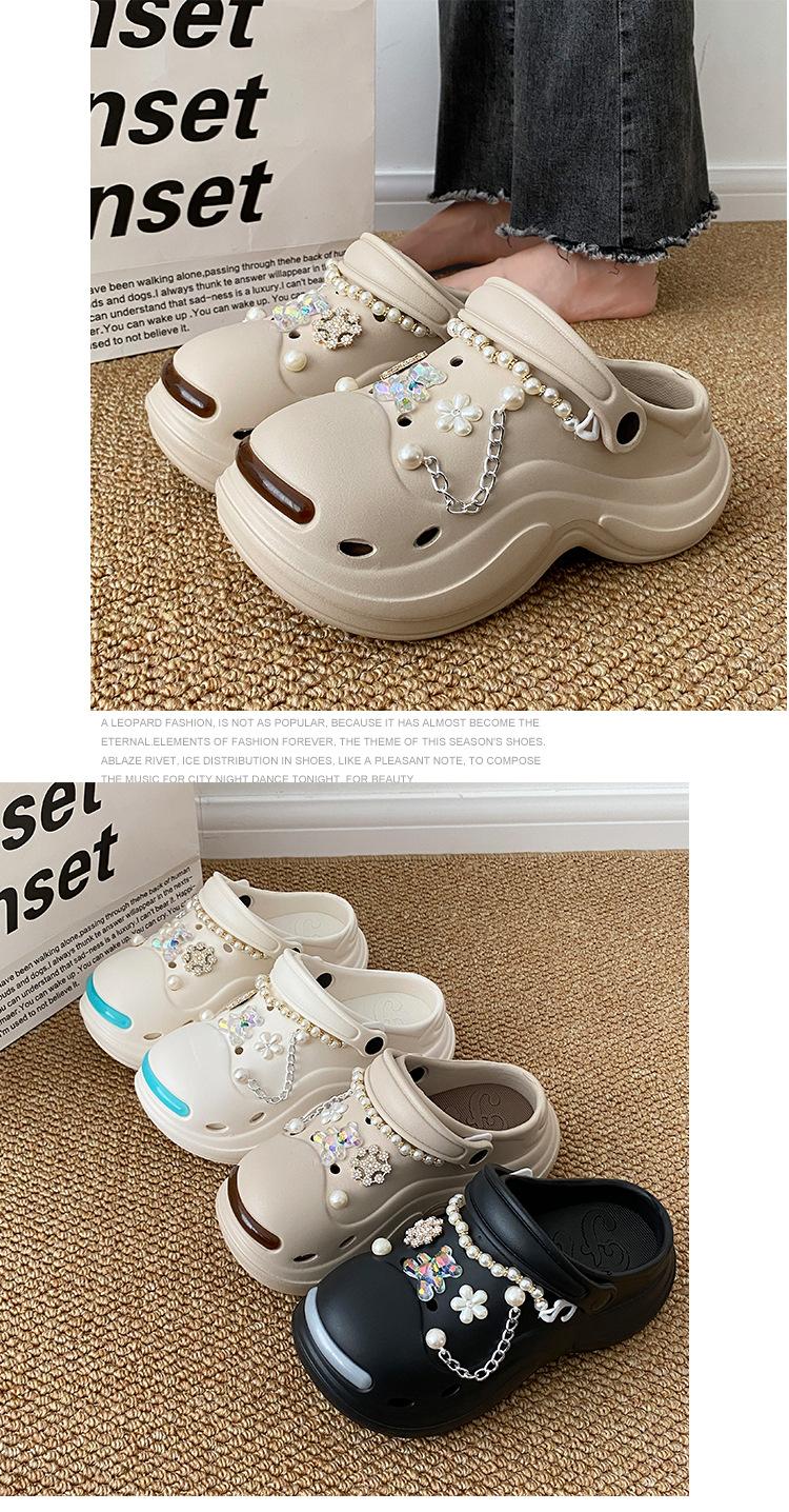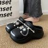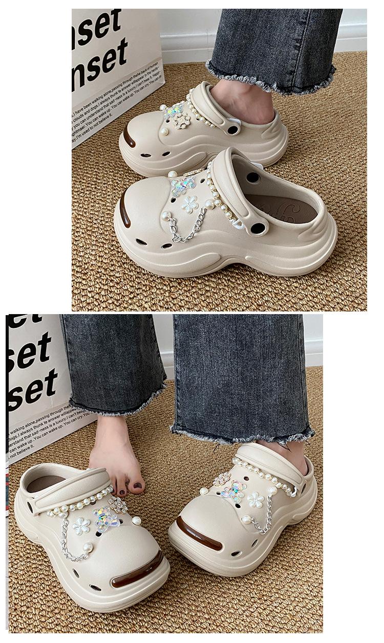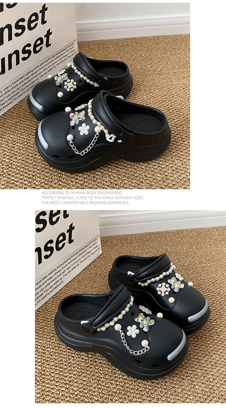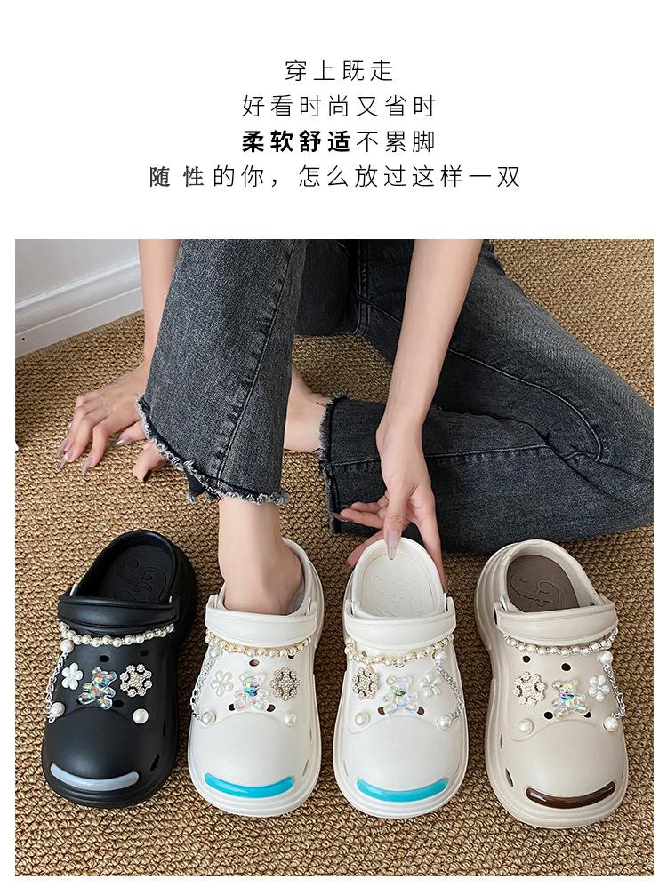 Zapatos de Mujer de Alta Gama con Pedrería de Perlas de Industria Pesada 2024 Verano Nuevo Zapatillas de Plataforma Gruesa Zapatos con Agujeros de Doble Uso