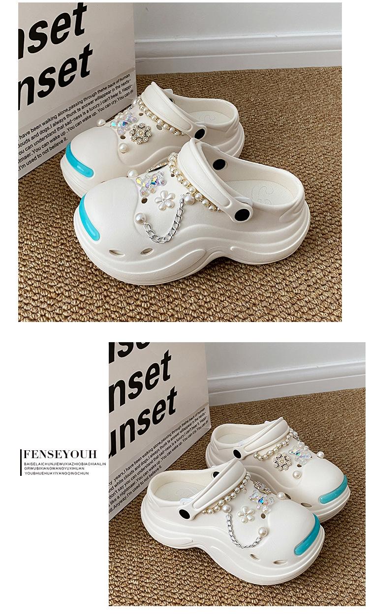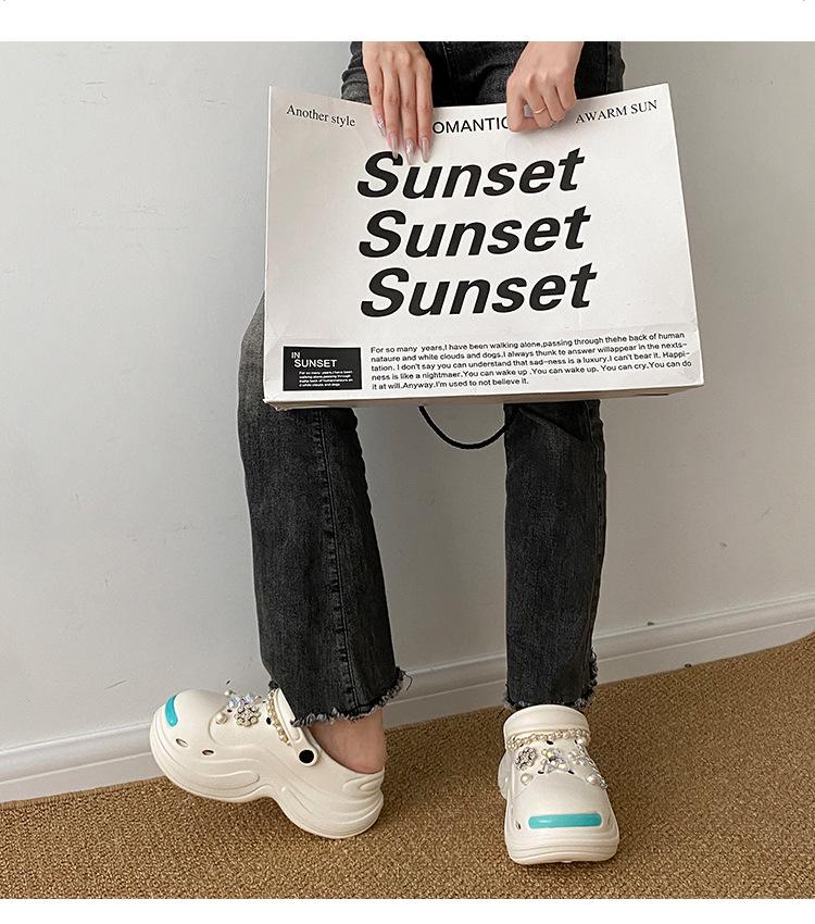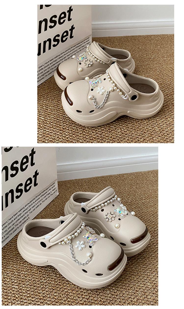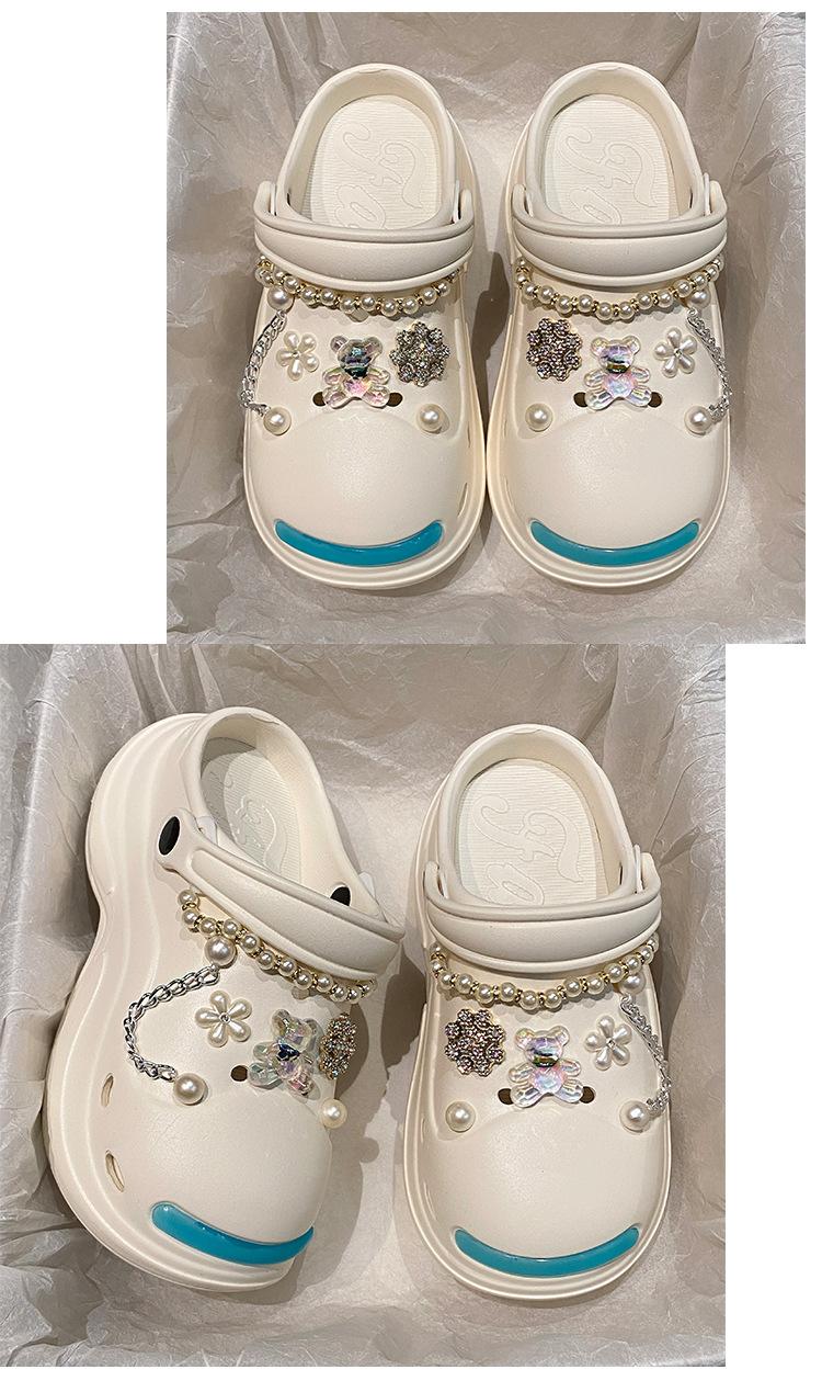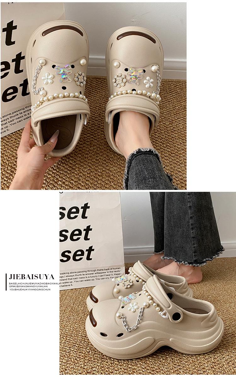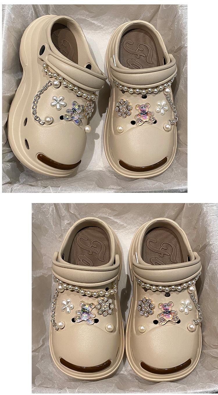Zapatos de Mujer de Alta Gama con Pedrería de Perlas de Industria Pesada 2024 Verano Nuevo Zapatillas de Plataforma Gruesa Zapatos con Agujeros de Doble Uso