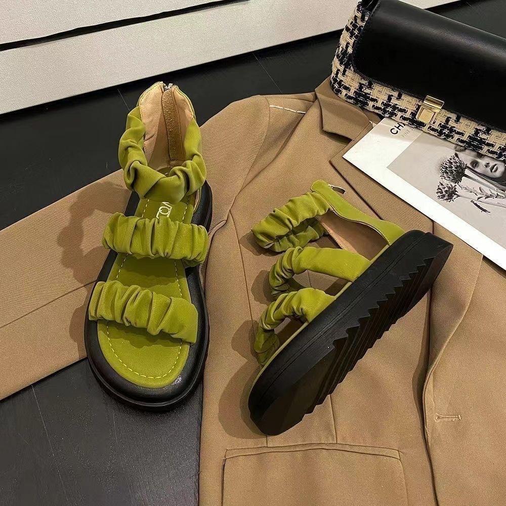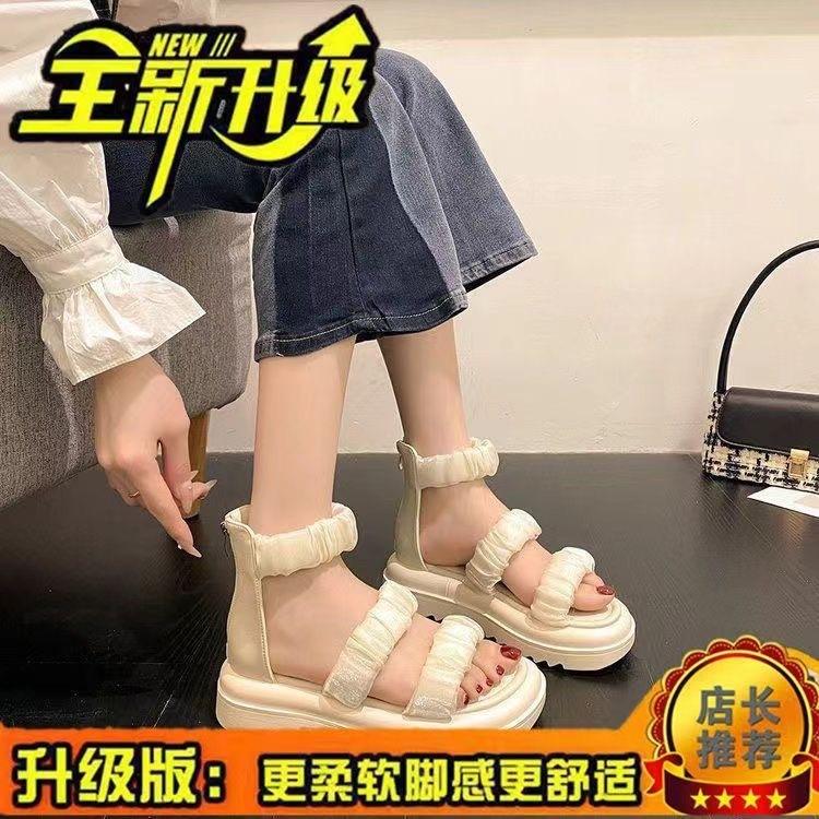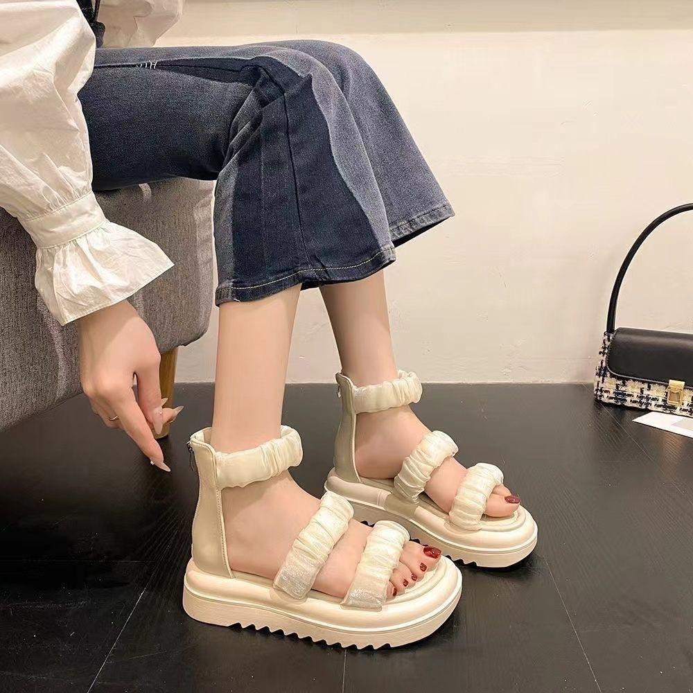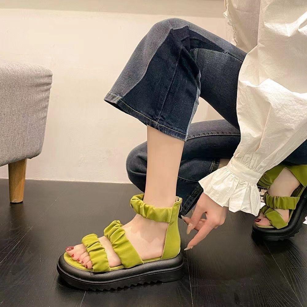 Sandalias de Plataforma Gruesa de Una Tira para Mujer 2024 Verano Nuevo Moda Casual Versátil Antideslizante Cómodas Zapatos Romanos de Playa