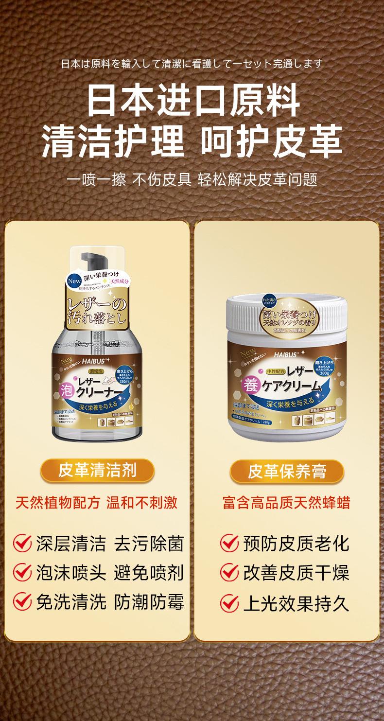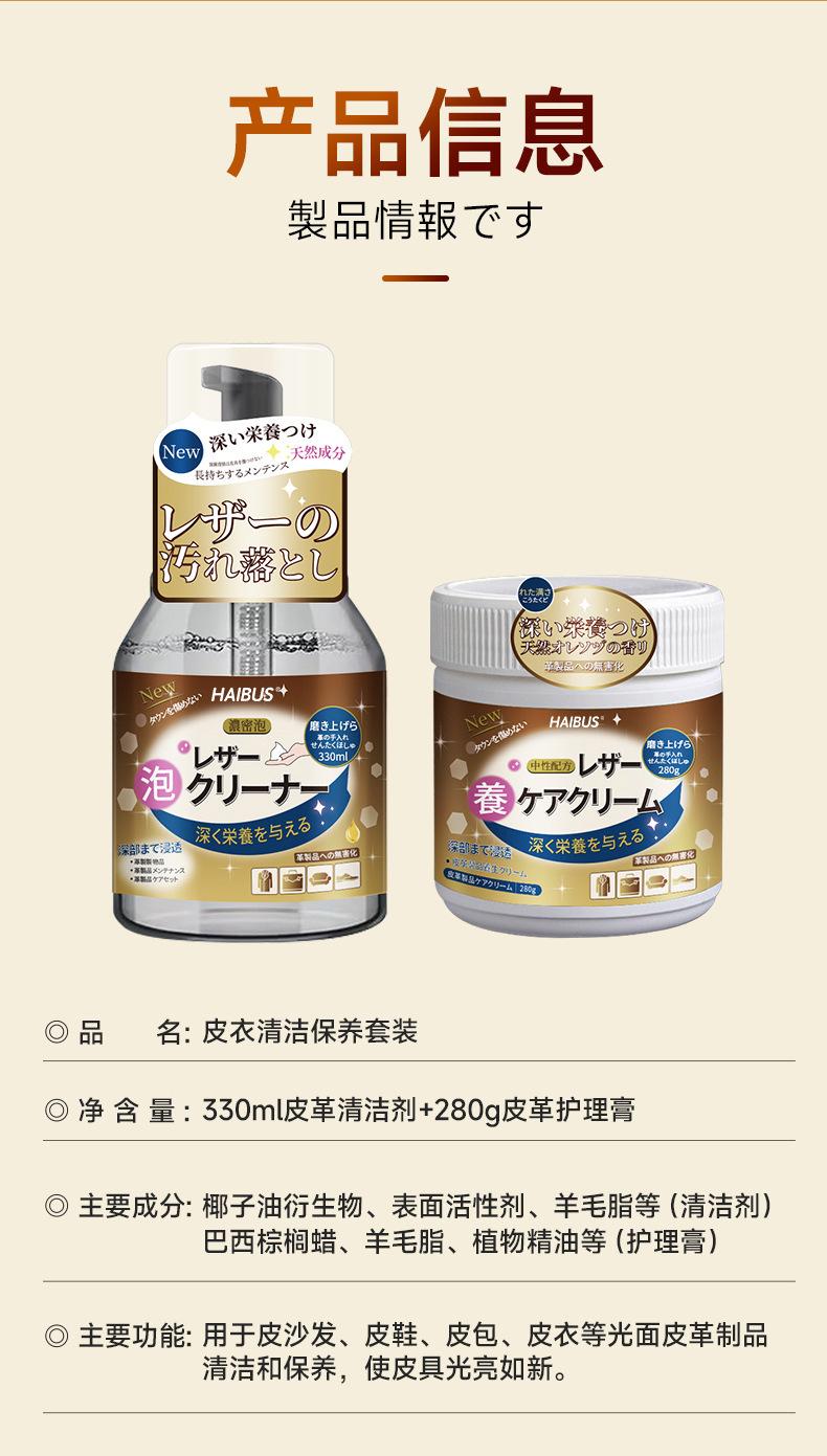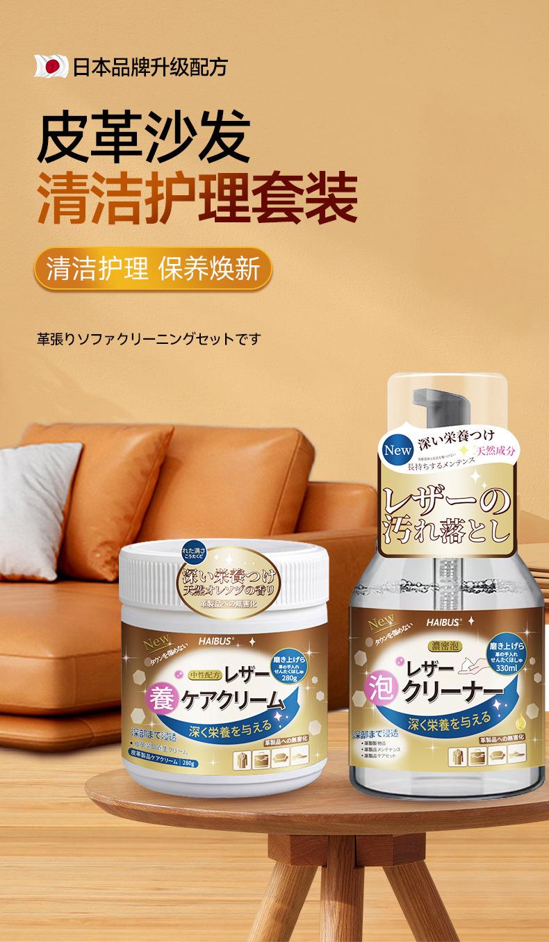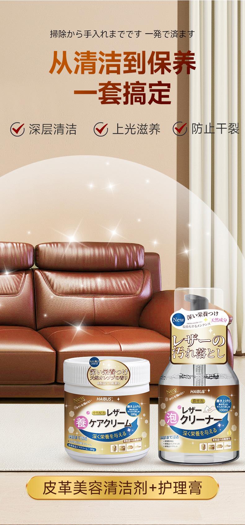 Leather cleaner 330ml bottle 28 bottles/box, Leather care cream 280g bottle 60 boxes/carton, Cleaning + care [...