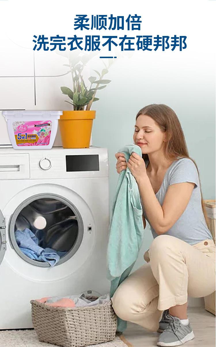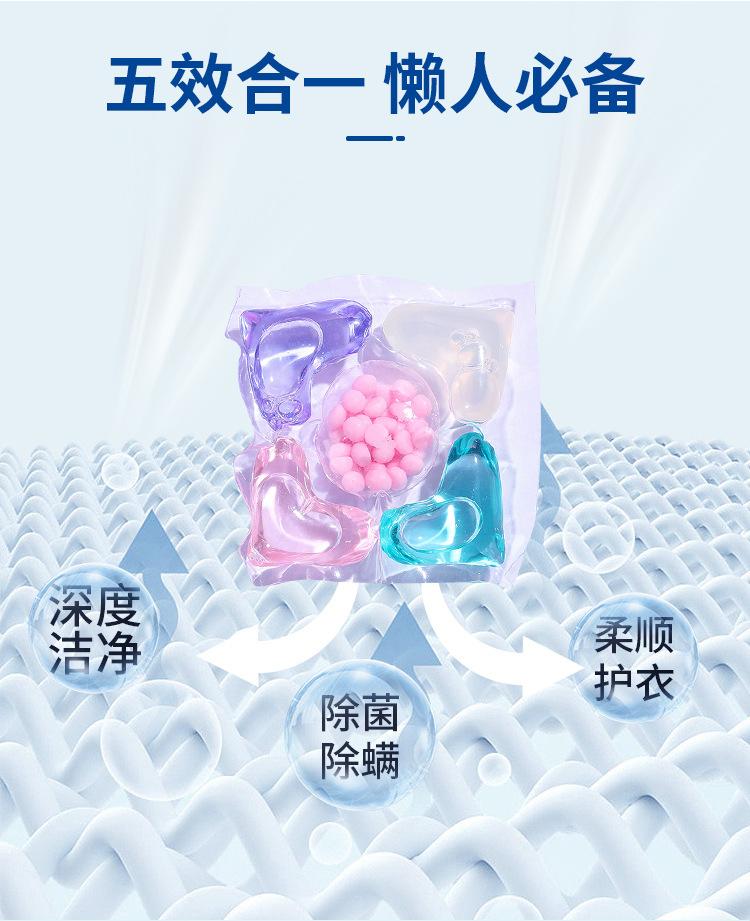 Cápsulas de Detergente para Ropa con Fragancia, Película Instantánea Tres en Uno para Quitar Manchas y Eliminar Ácaros, Líquido para Lavar Ropa Doméstico para Proteger la Ropa y el Color, Perlas Quitamanchas