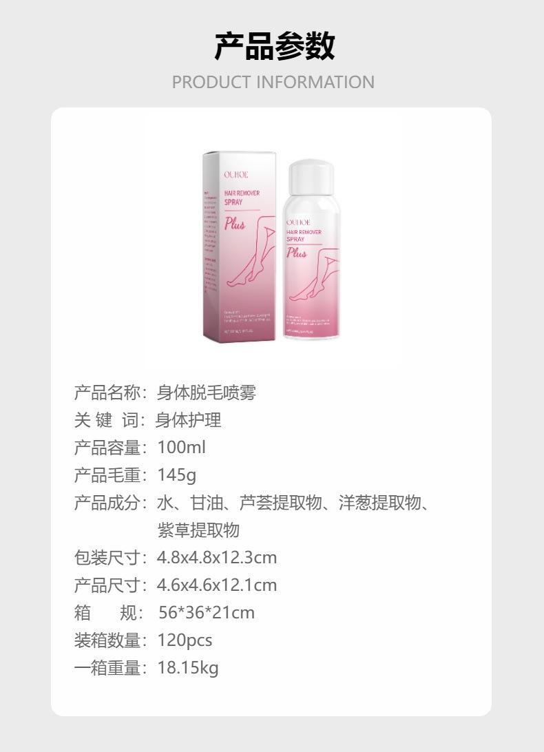 OUHOE Spray Depilatorio Corporal Cuerpo Axilas Piernas Piel Suave y Delicada Depilación Suave No Irrita