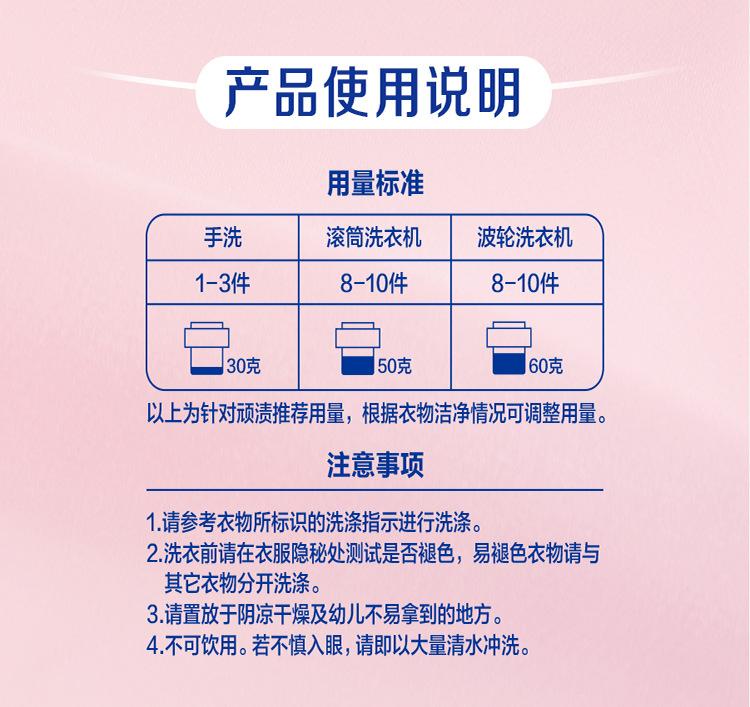 Deep cleaning, Color protection, Low foaming and easy to bleach
