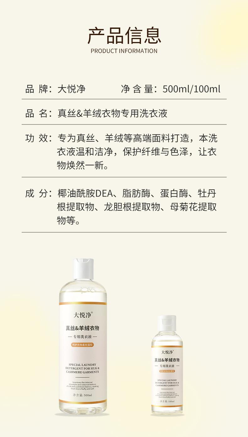 Flavor, Dayuejing silk cashmere laundry detergent 500ml, Dayuejing silk cashmere laundry detergent 100ml