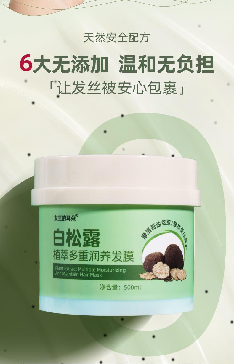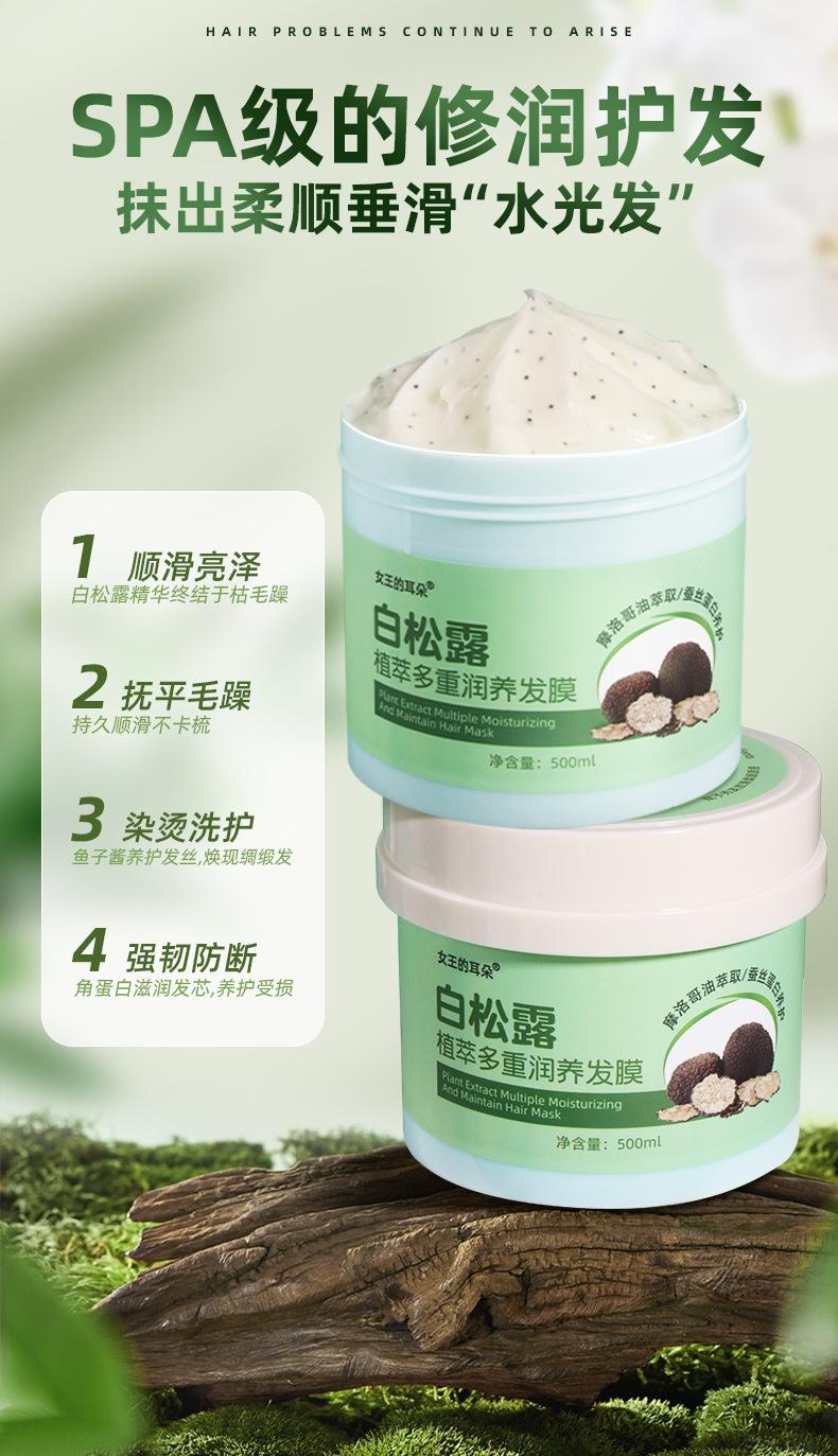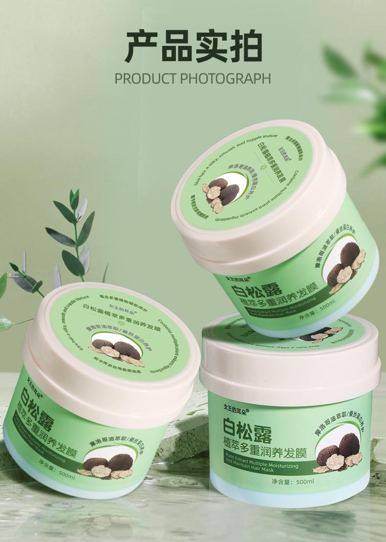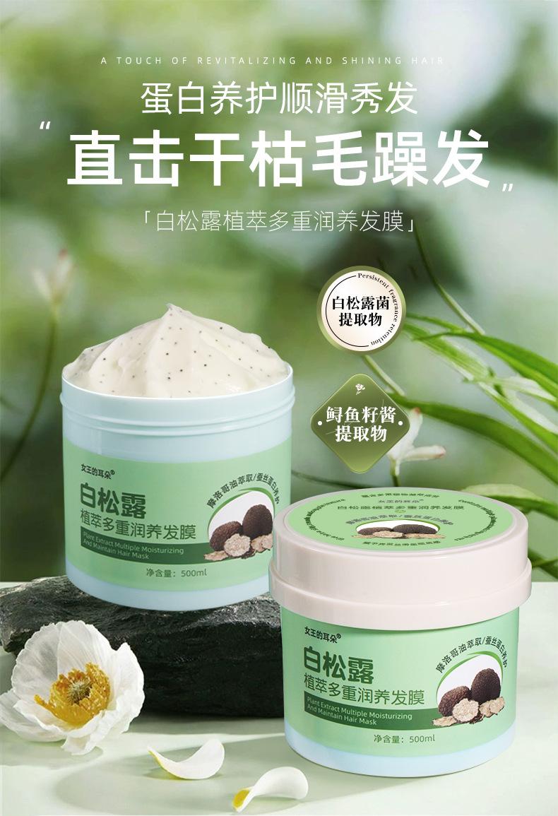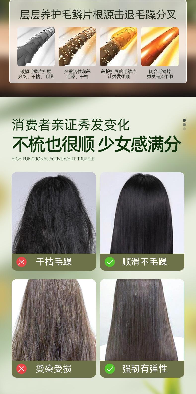 Acondicionador hidratante y flexible con planta de trufa blanca de oreja de reina que repara la película de evaporación libre, mejora el encrespamiento seco.