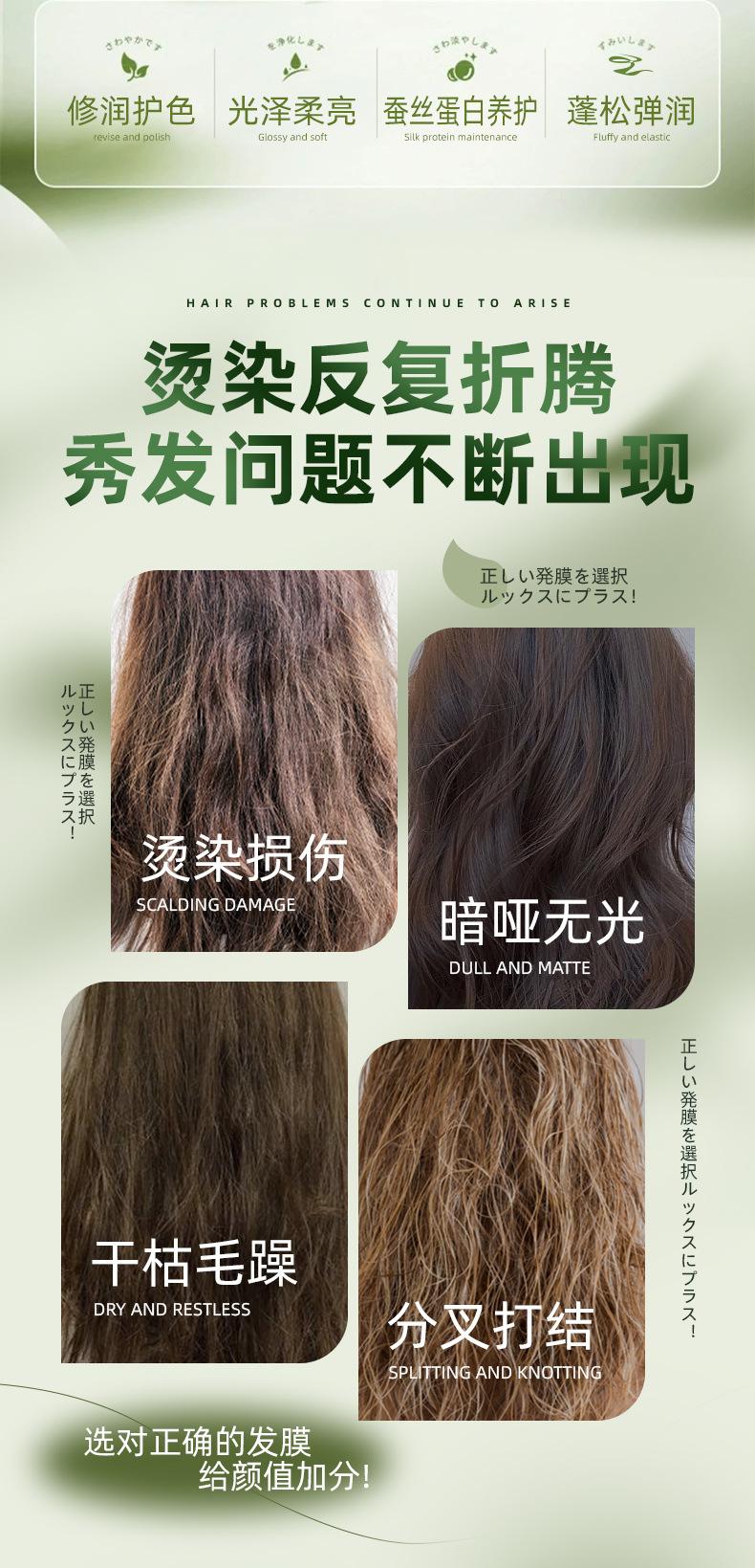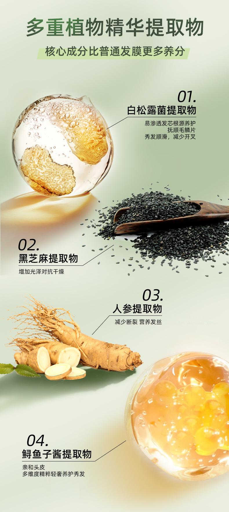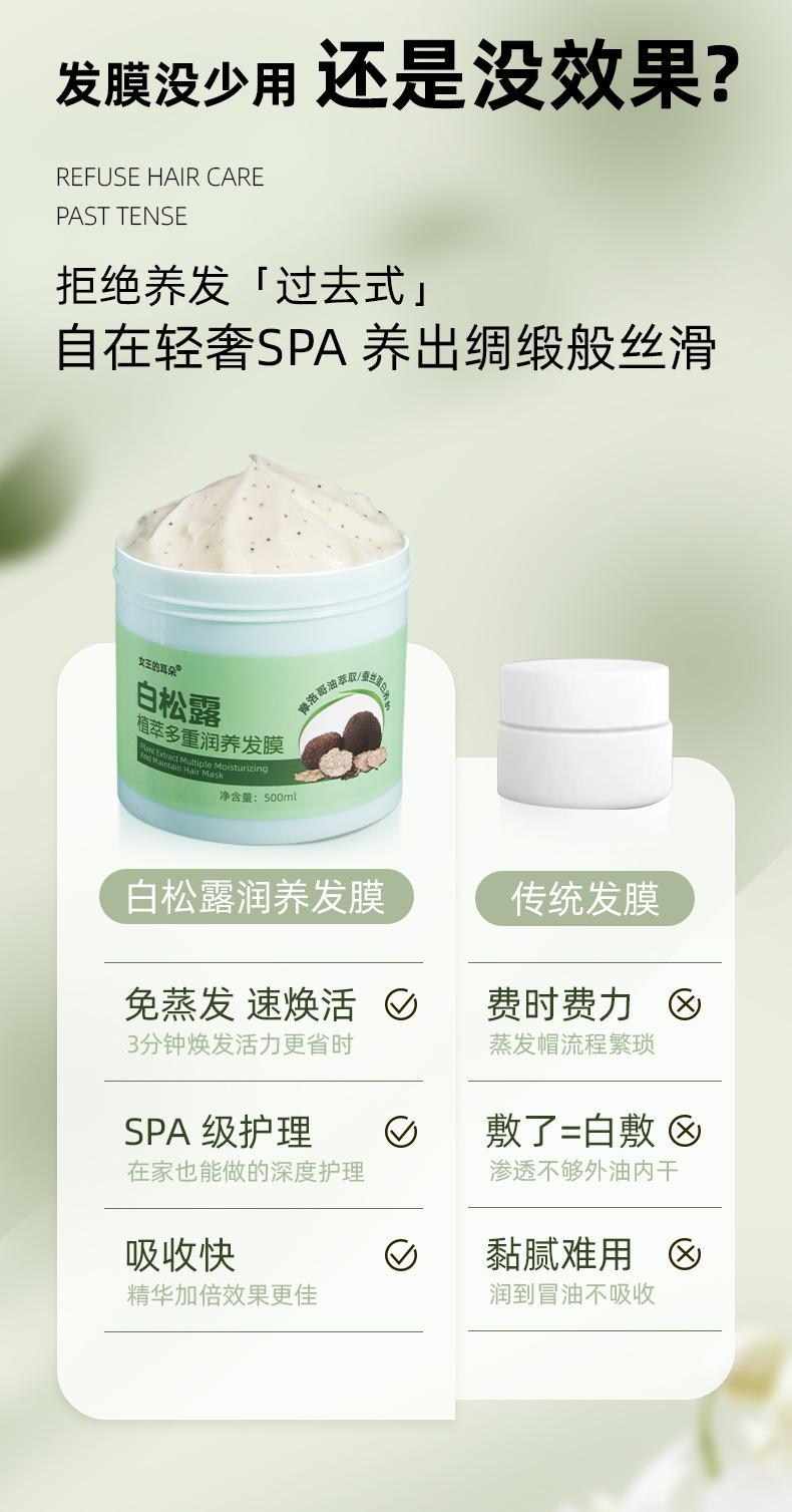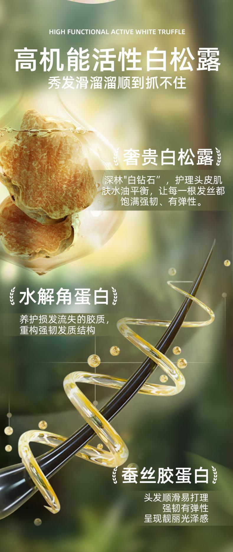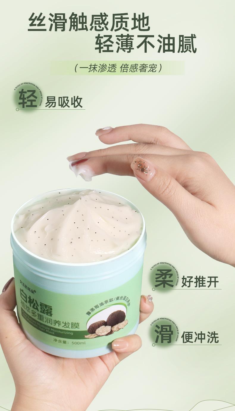 Acondicionador hidratante y flexible con planta de trufa blanca de oreja de reina que repara la película de evaporación libre, mejora el encrespamiento seco.