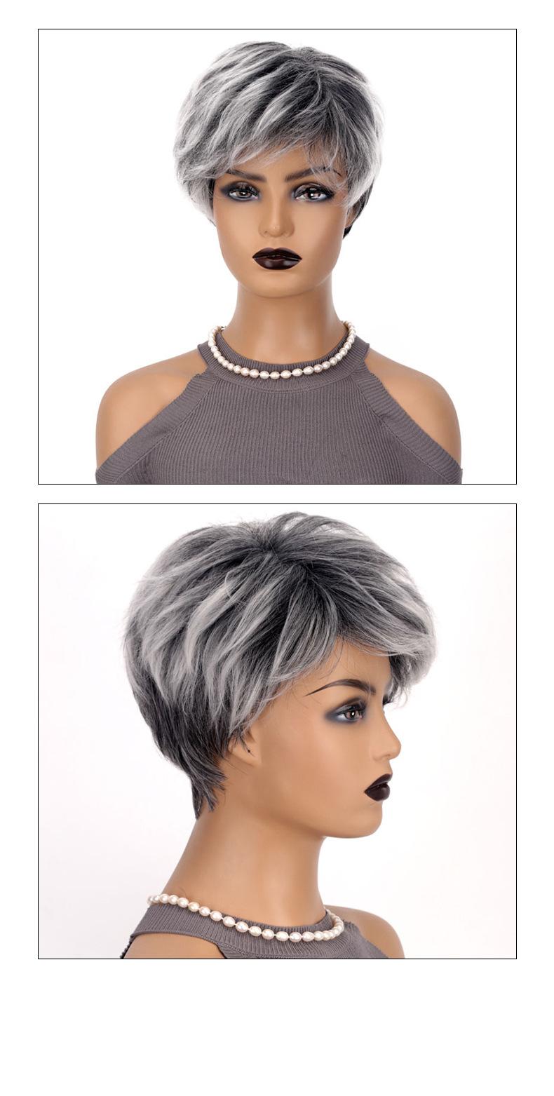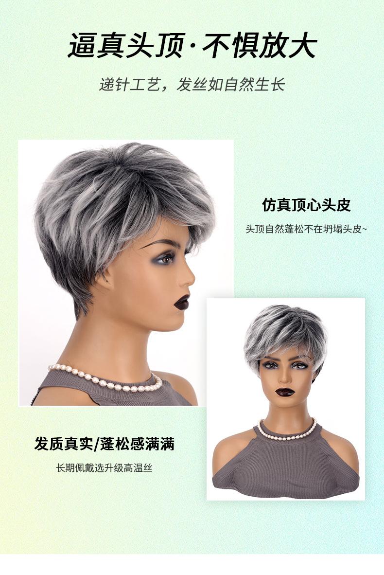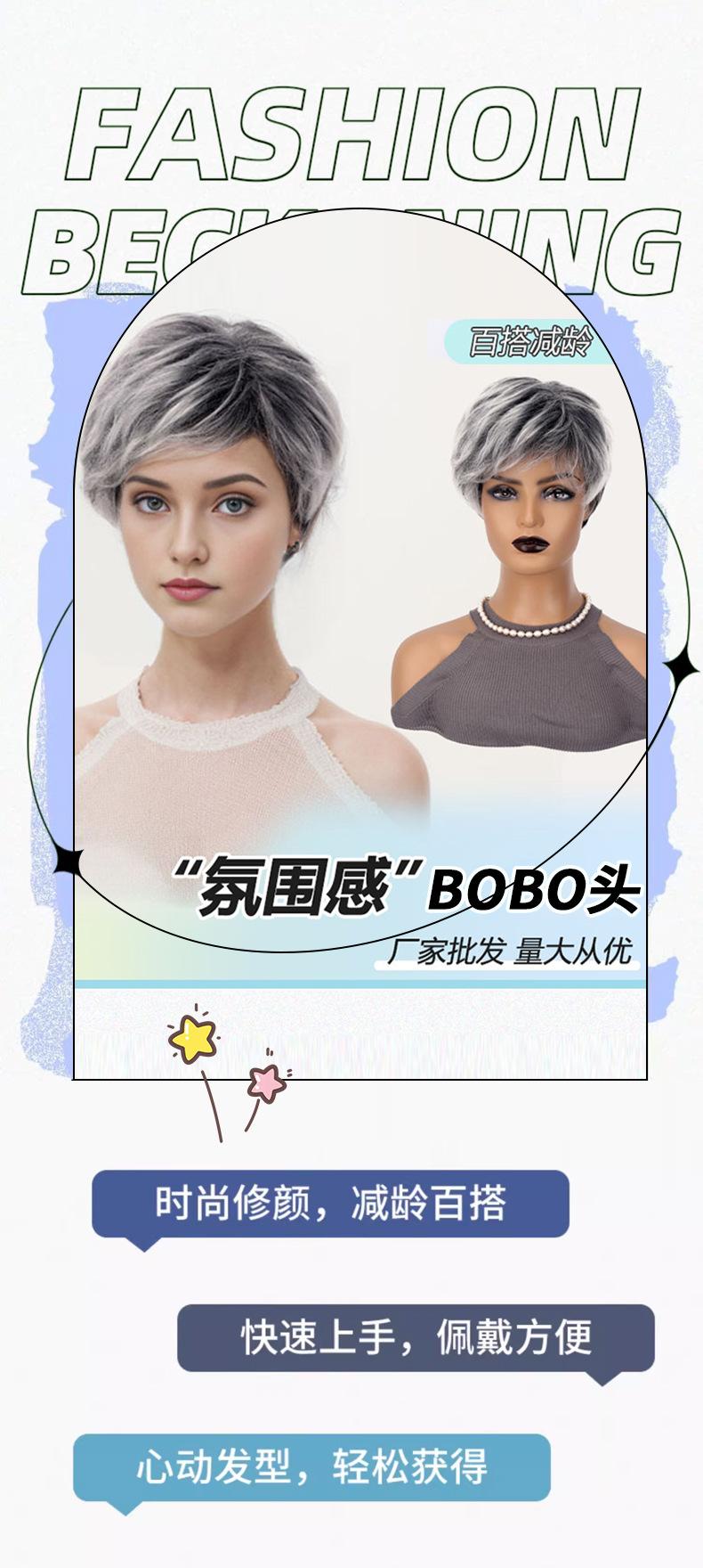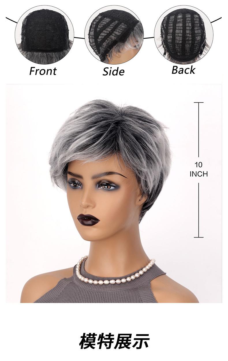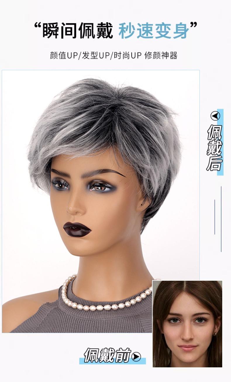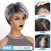 Peluca corta gris plateado transfronteriza de seda completa para mujer, juego de cabello completo hasta los hombros, cabello corto modificado para el rostro, juego de peluca al por mayor