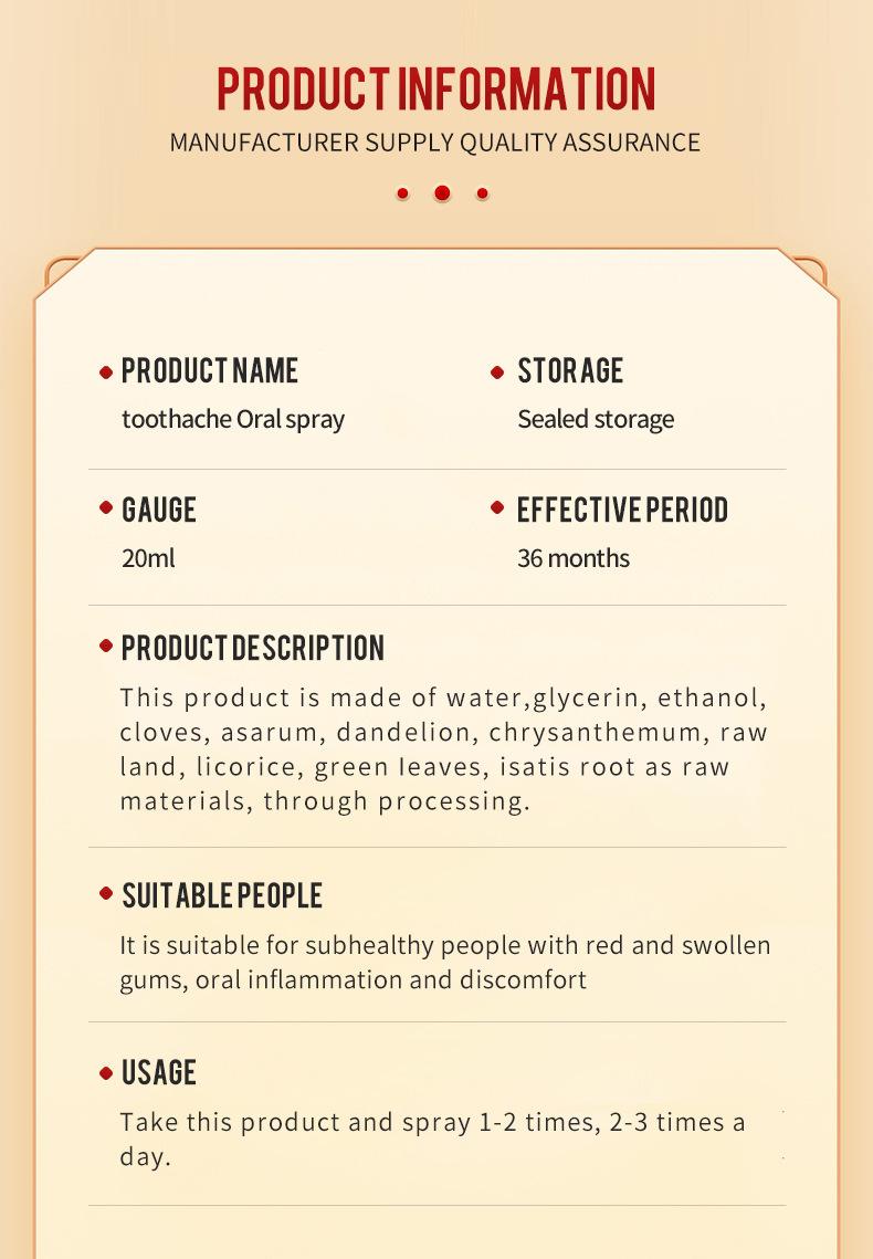 Spray Bucal para el Dolor de Dientes Exclusivo para Comercio Electrónico Transfronterizo para Aliviar el Malestar Dental y el Mal Aliento Spray para el Malestar Bucal