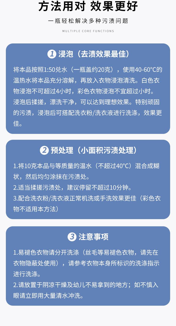 350g artefacto para quitar manchas de red de uniforme escolar sal explosiva doméstica polvo de impregnación fuerte blanco brillante amarillo limpieza profunda de lavandería