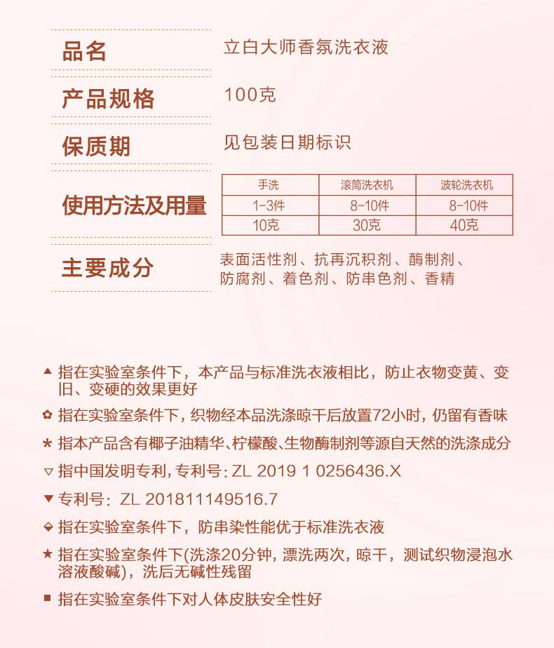 Detergente Líquido para Ropa Liby Master Fragrance 100g*2 Bolsitas Pequeñas Hogar Fragancia Duradera Limpieza Profunda y Quitamanchas Lote Genuino
