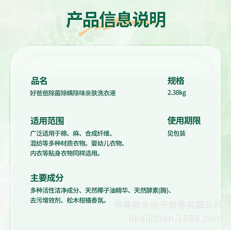 Buen padre esterilización, eliminación de ácaros, detergente para ropa, eliminación profunda de manchas, botella de fragancia amigable con la piel 2.38kg al por mayor