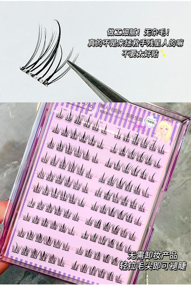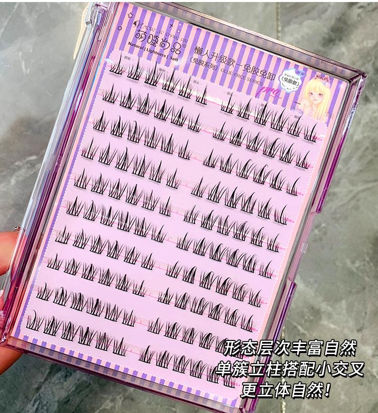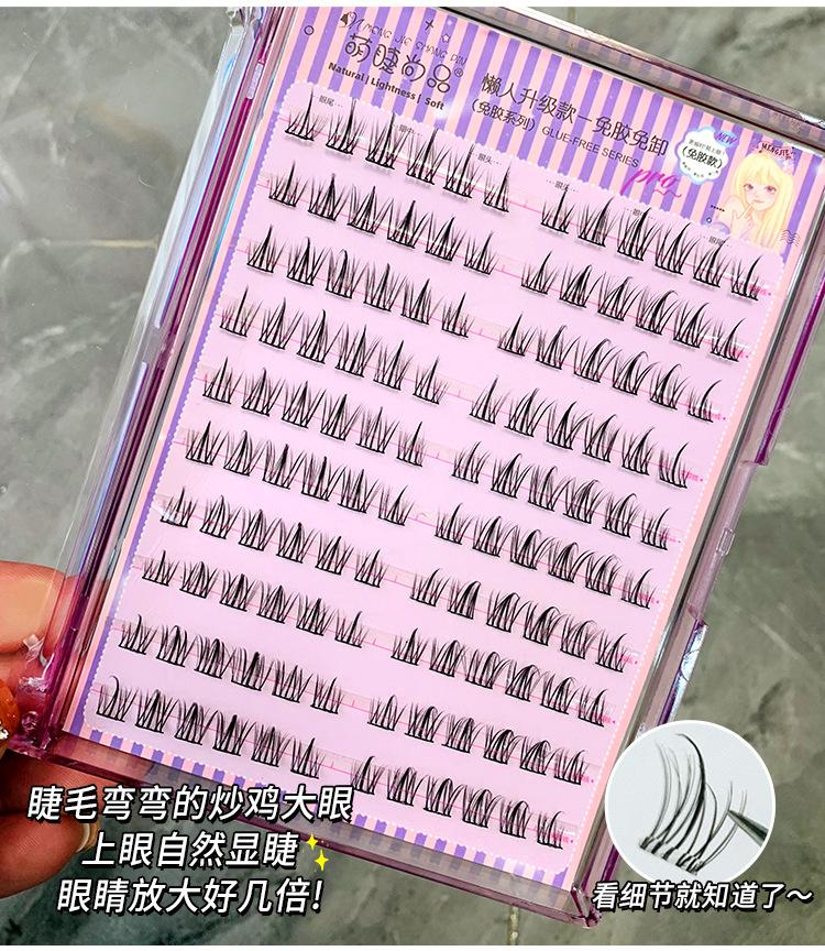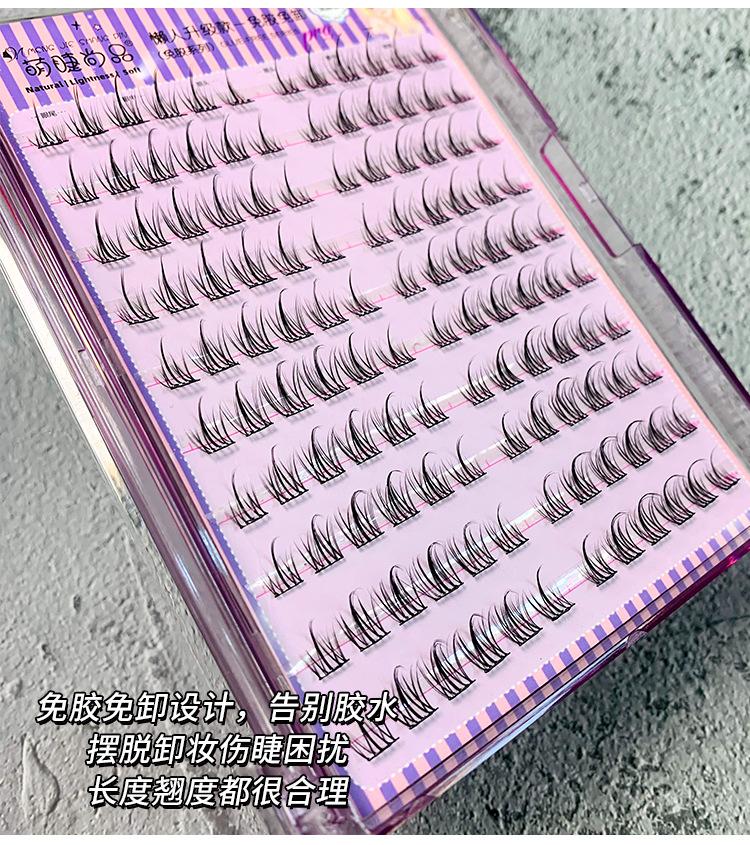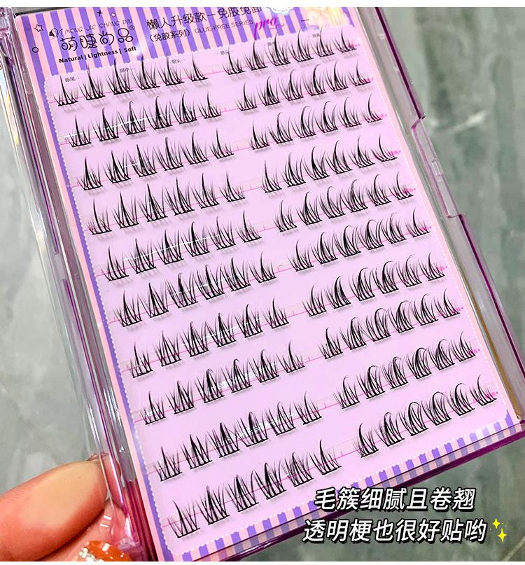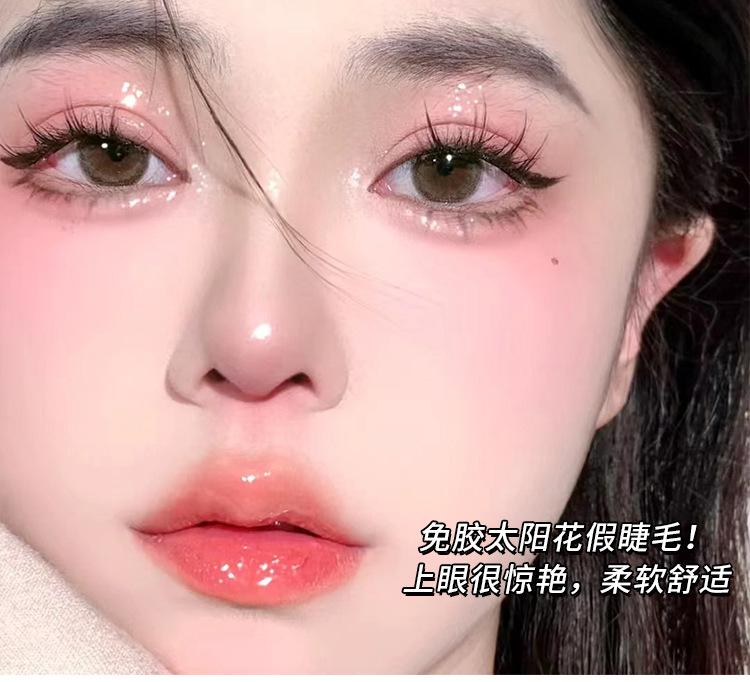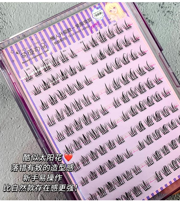 Pestañas postizas autoadhesivas de girasol perezoso, sin gel, naturales, de un solo grupo, con espejo de Barbie de dibujos animados para principiantes, pestañas segmentadas