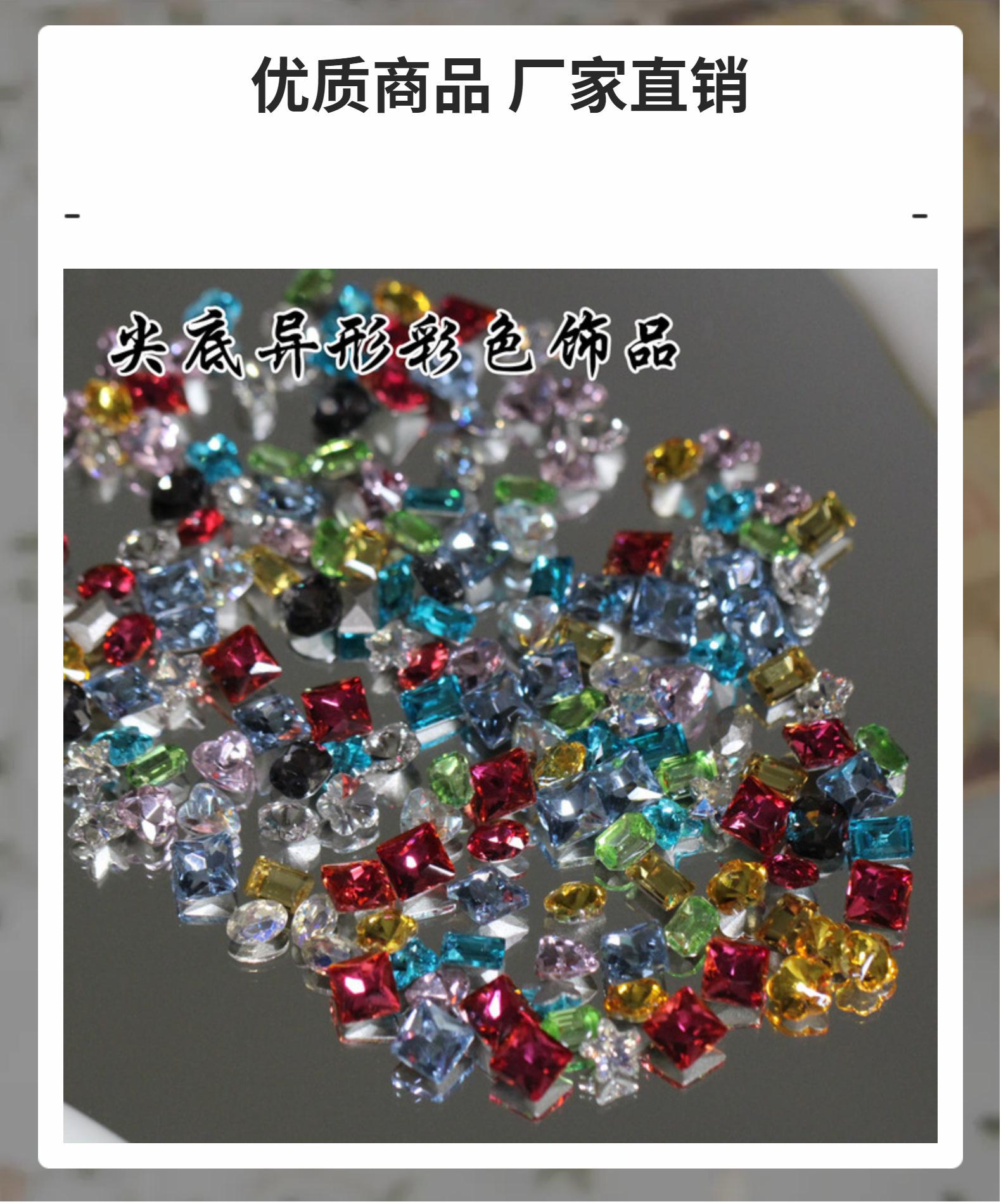 Taladro de base afilada para uñas rojas de red, con forma de 3-8 mm, tamaño pequeño, de cristal de colores mixtos, accesorios para uñas