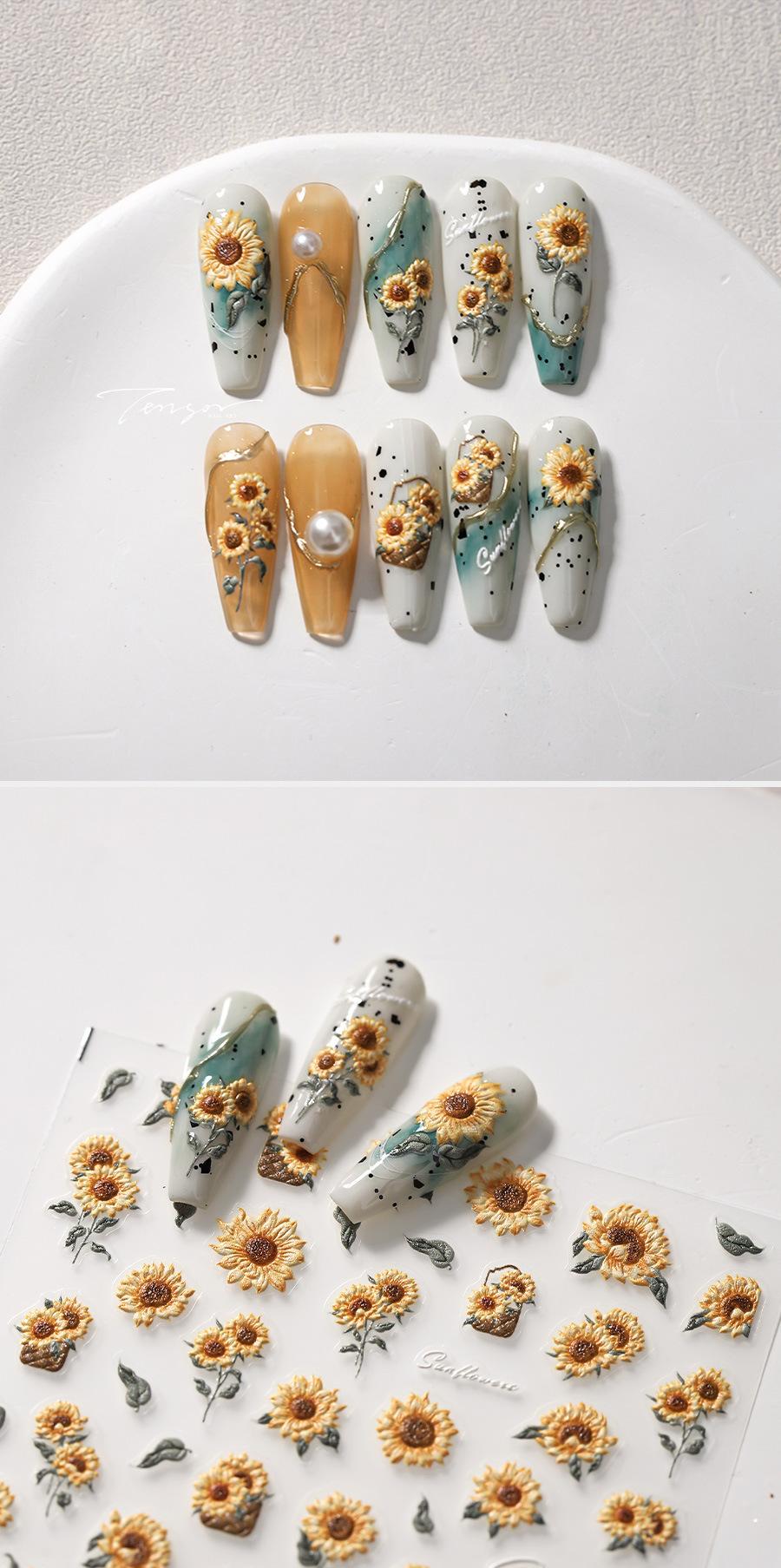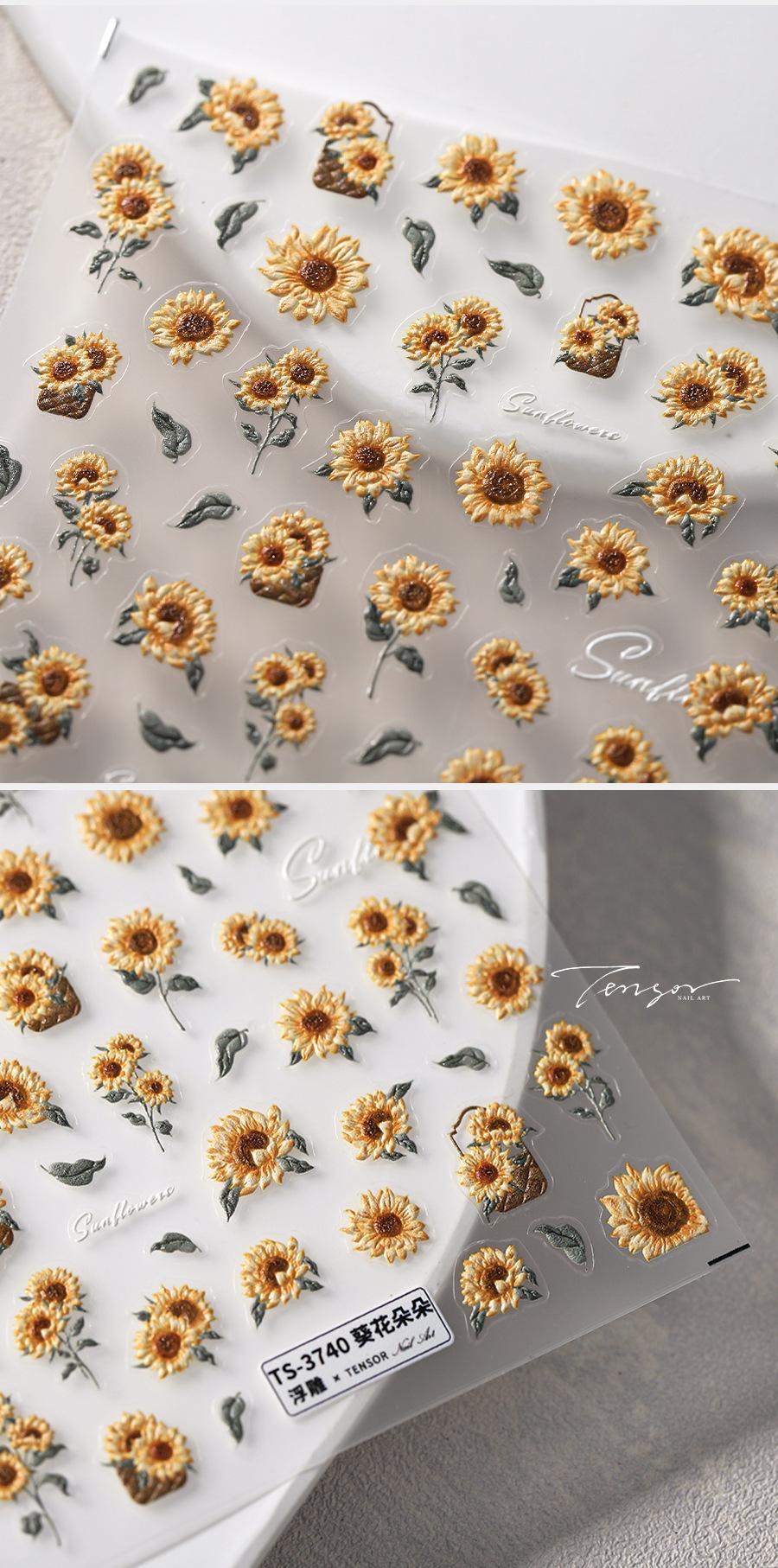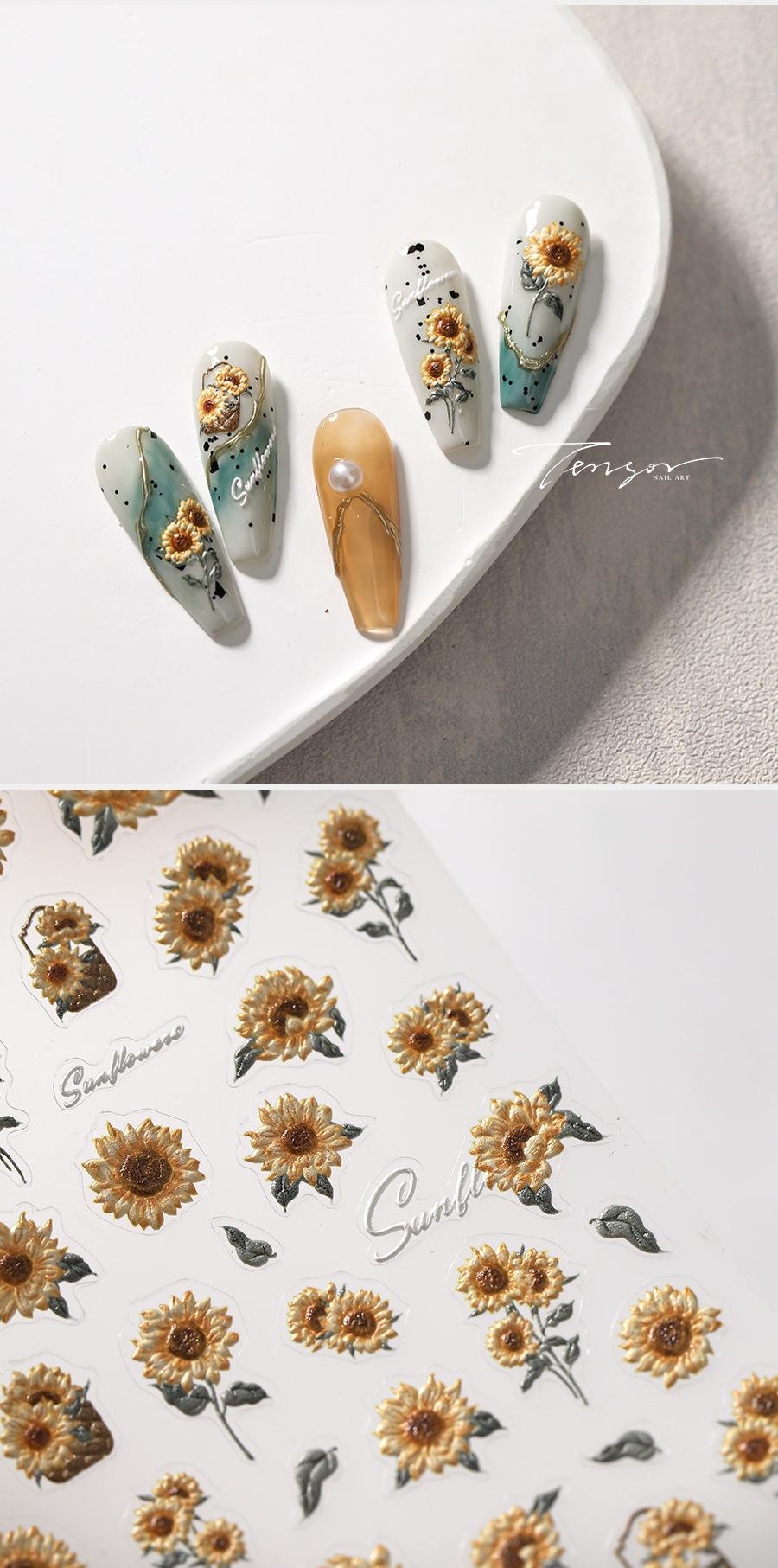 TENSOR Adhesivo estereoscópico para uñas con diseño de girasol, fino y resistente, para joyería de uñas TS-3739 Girasol