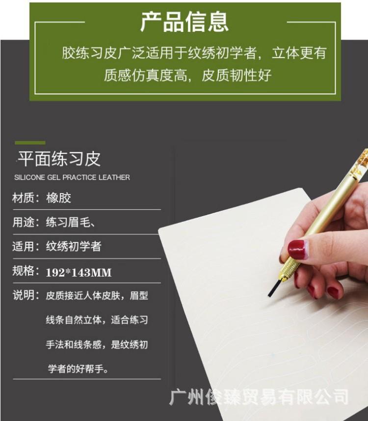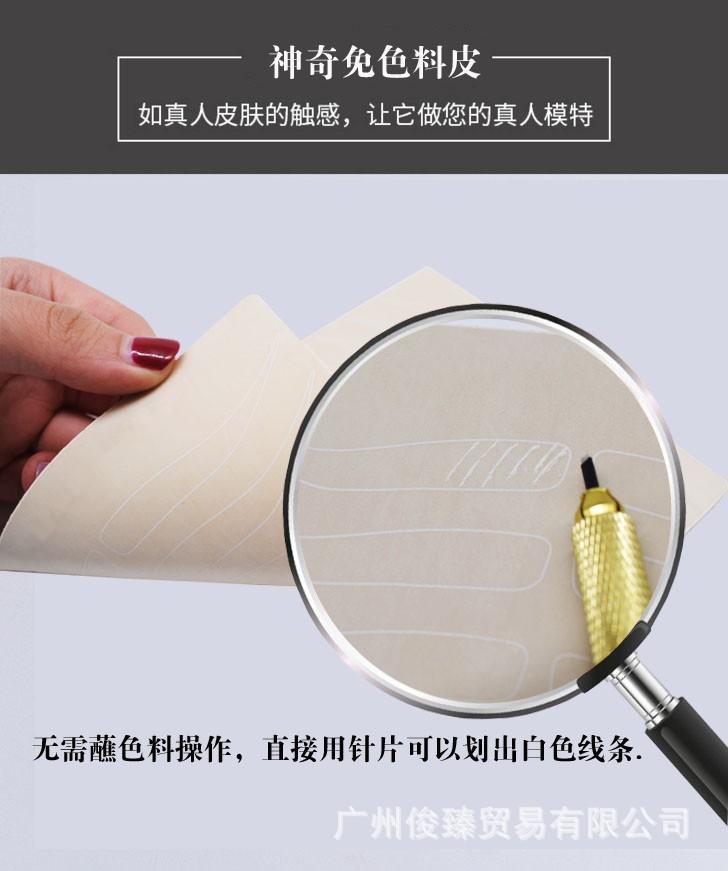 Venta al por mayor de fábrica de tatuajes de cejas, cuero sin pigmento, goma de imitación de cuero, ceja, ojo, labio, medidor de corriente, herramienta de práctica de tatuaje de cuero
