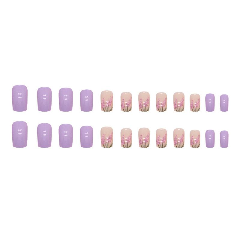 Compra Dulce Flor de Verano manicura púrpura lavanda Europeo y Americano Fresco uña postiza producto terminado uso de uñas lote mixto al por mayor en Joom.pro
