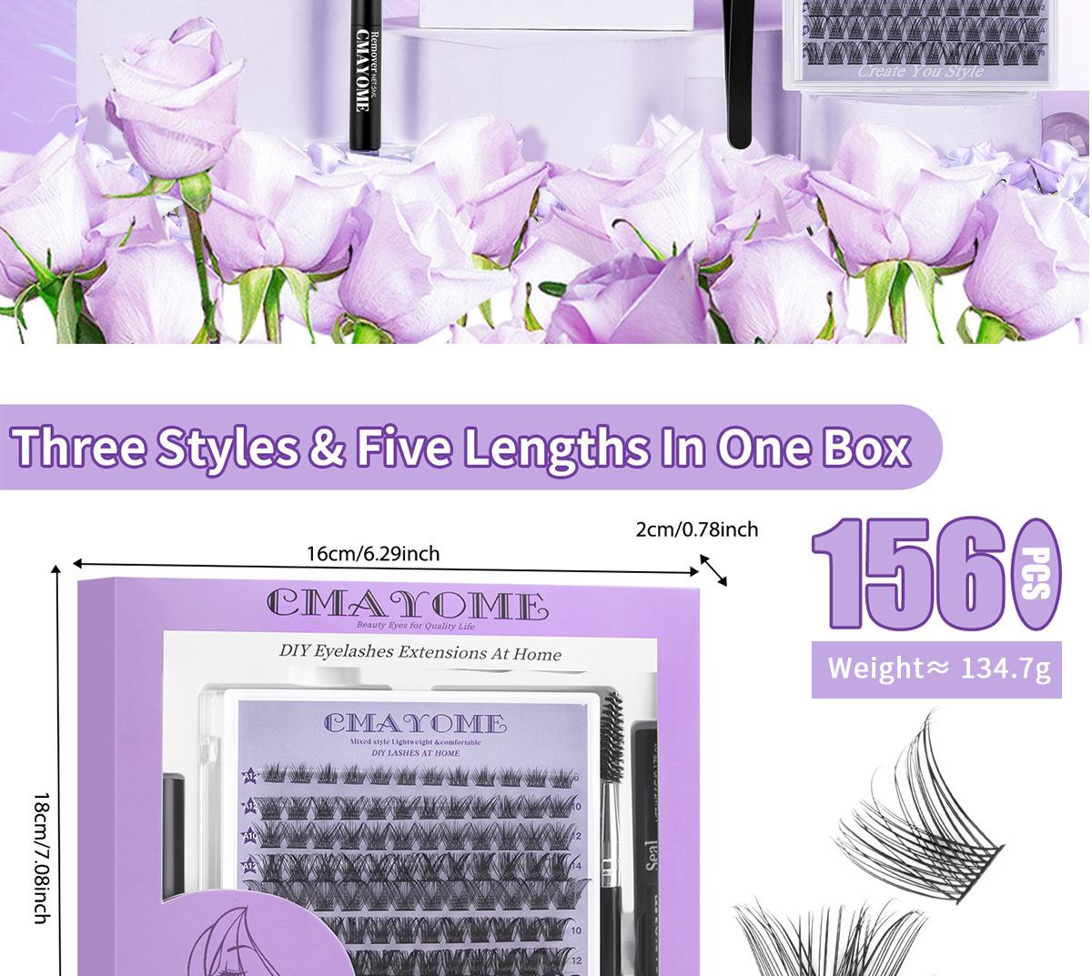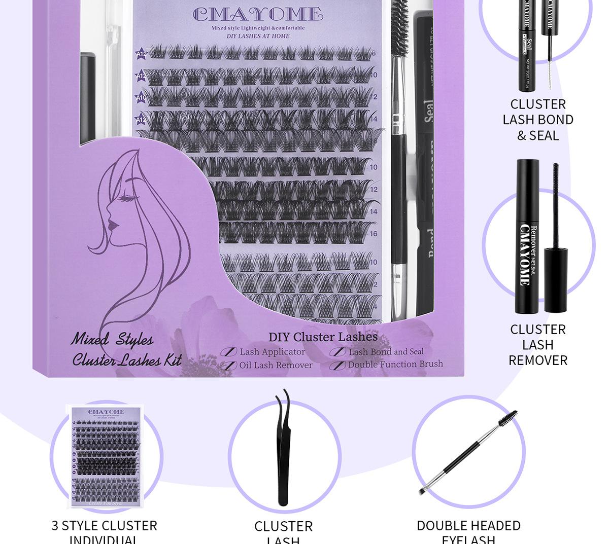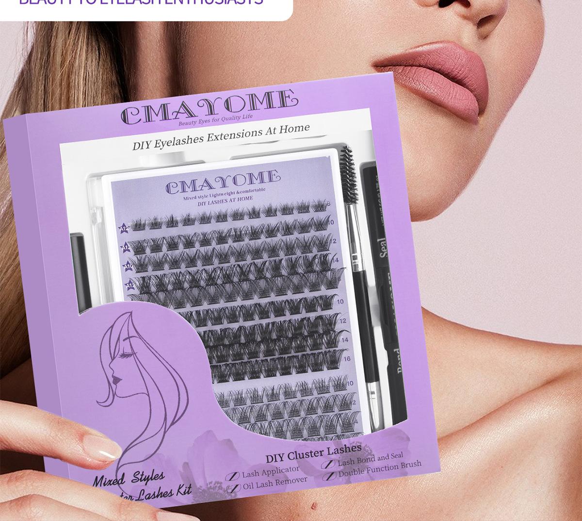 Oferta especial de Amazon: juego de pestañas postizas transfronterizas de un solo grupo, caja con pinzas de pegamento de doble cabeza y pestañas segmentadas.