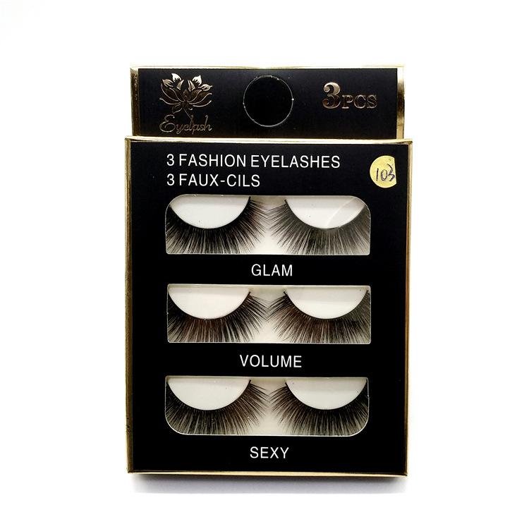 Nuevas Pestañas Postizas 3D103 Pestañas Multicapa Set de Tres Pares Ojo de Barbie Maquillaje de Escenario Pestañas Postizas Simuladas Gruesas