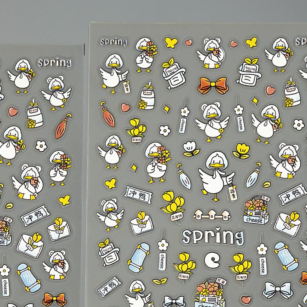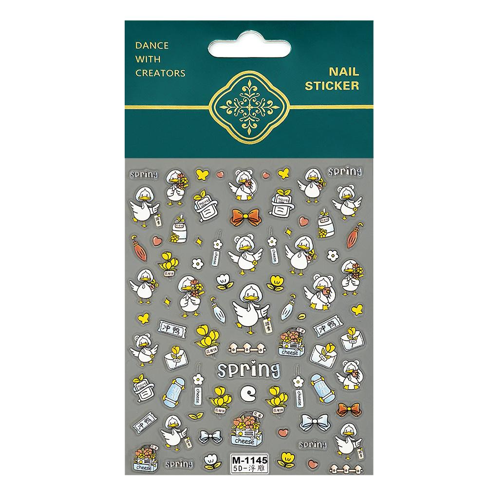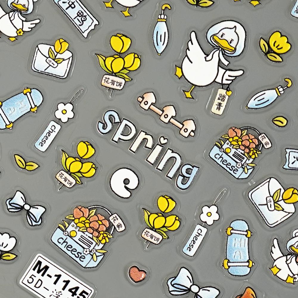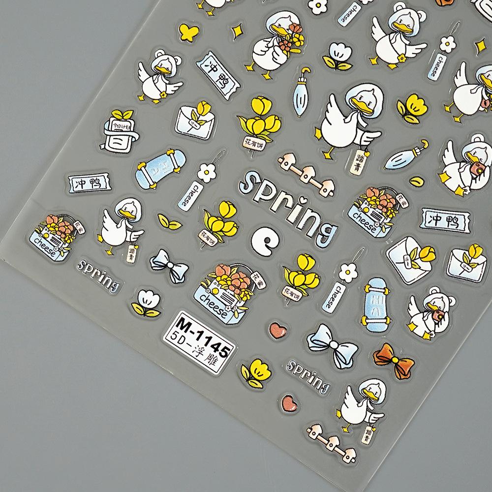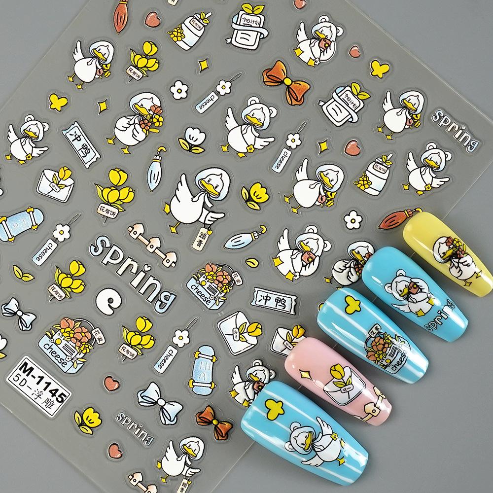 Redanco nuevas pegatinas de arte de uñas 5D en relieve de dibujos animados pato tridimensional adhesivo calcomanías de uñas al por mayor
