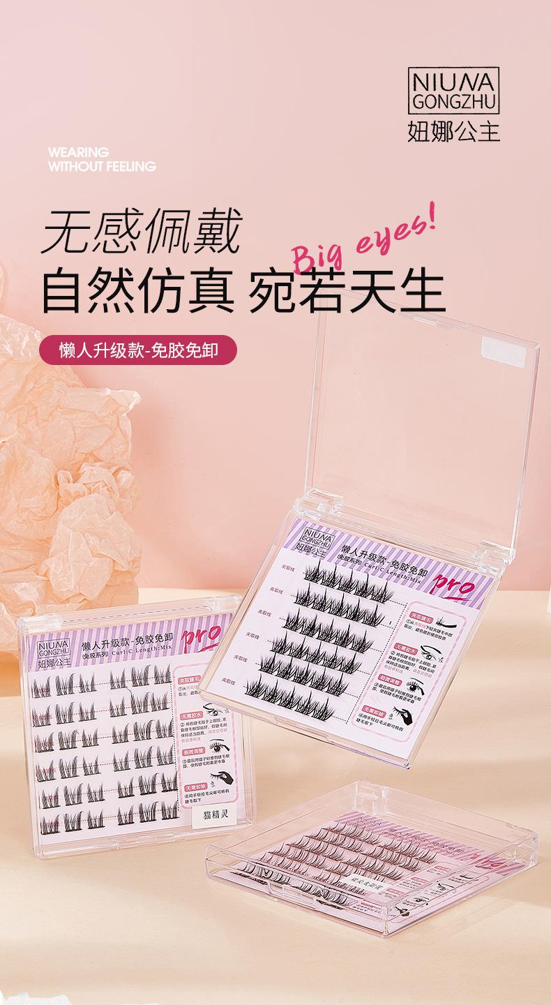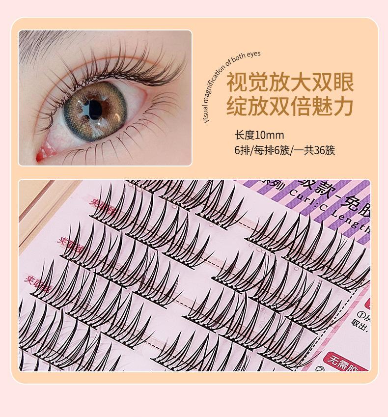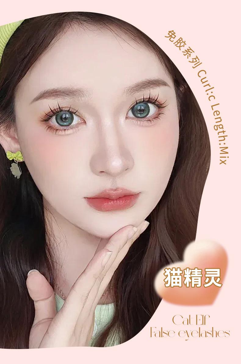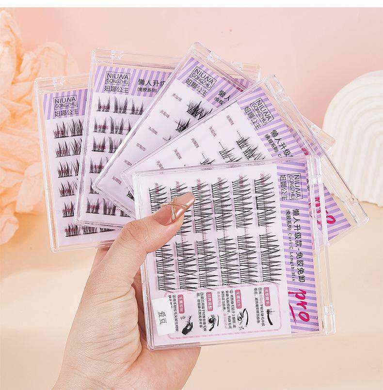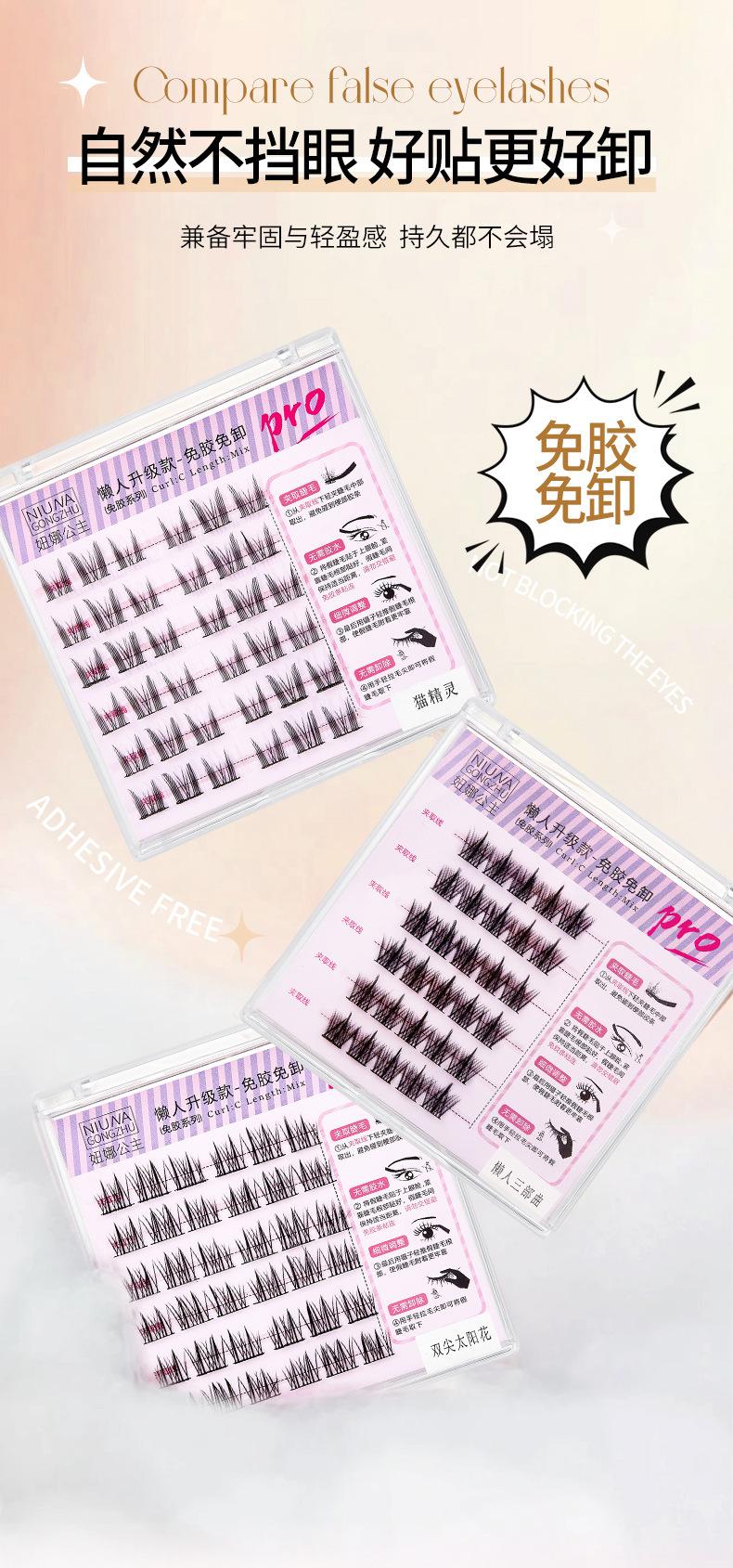 Pestañas postizas sin pegamento Pure Desire Cat Elf, un solo grupo, segmentadas, de simulación natural, de tallo fino, gruesas y rizadas, para mujer