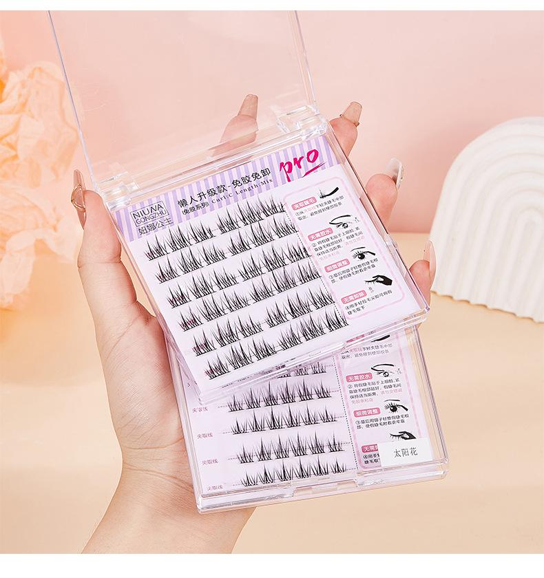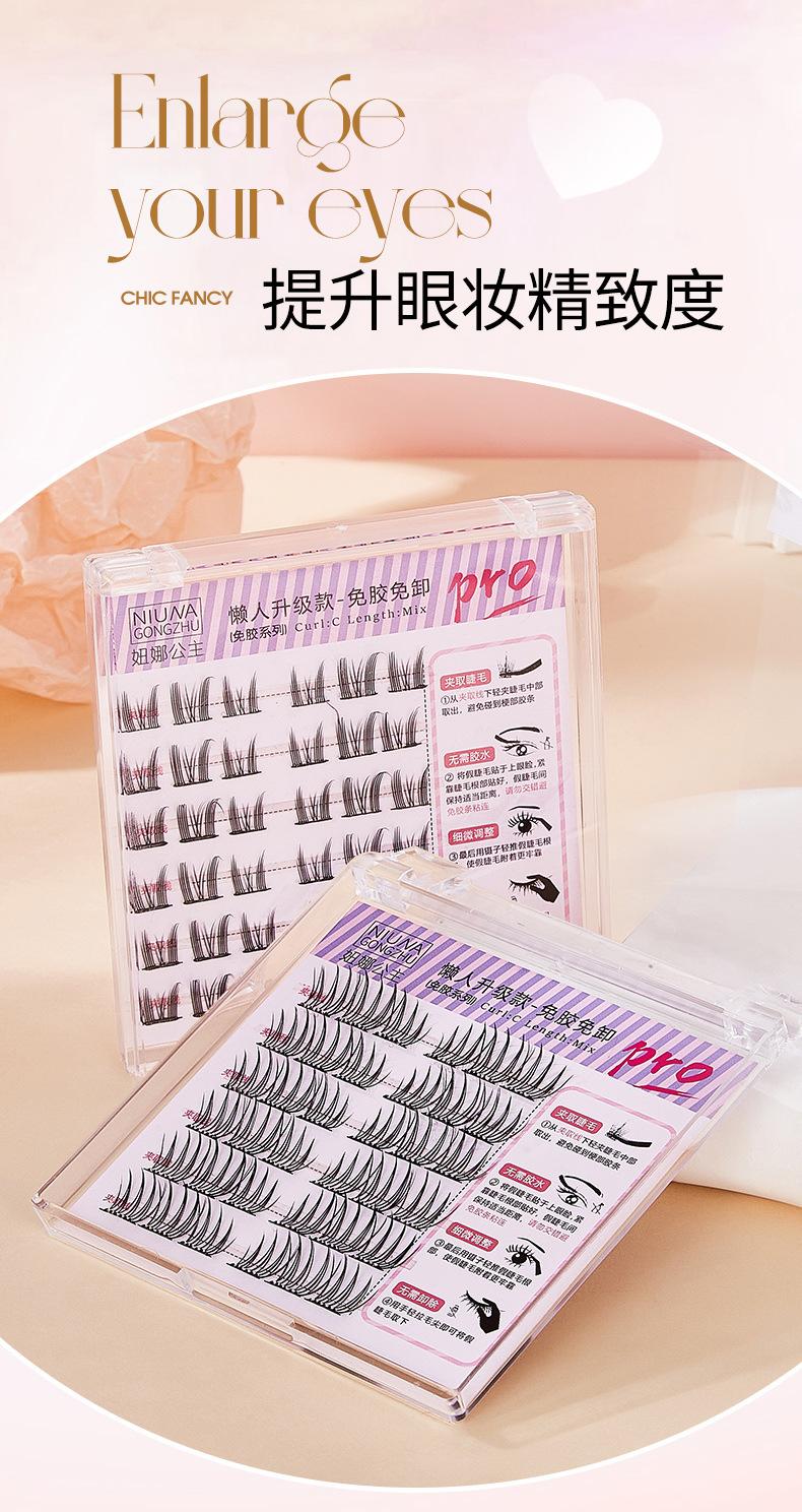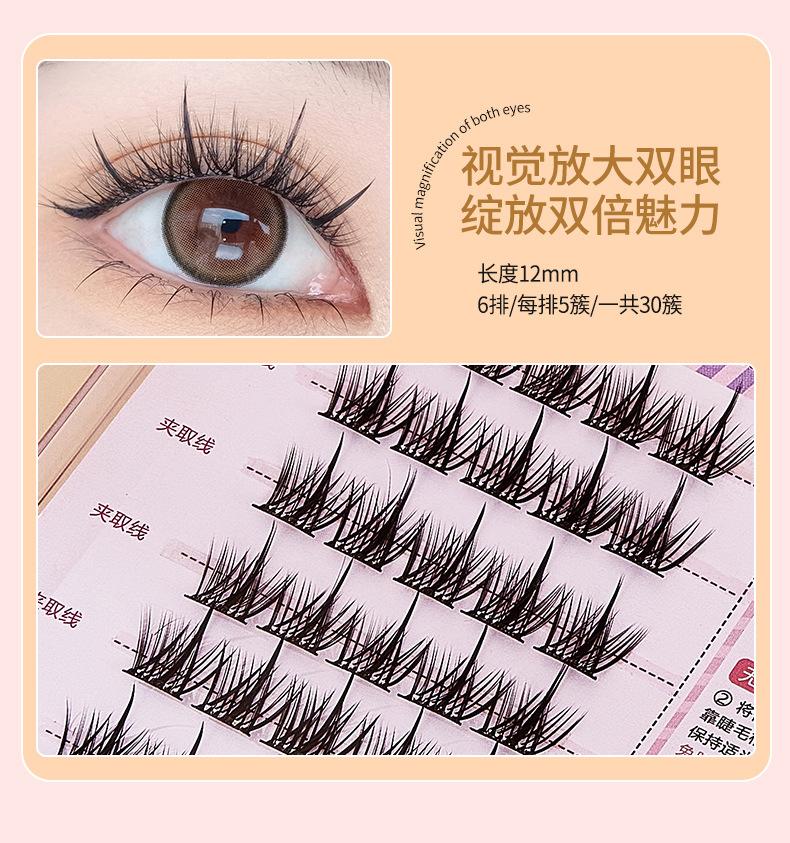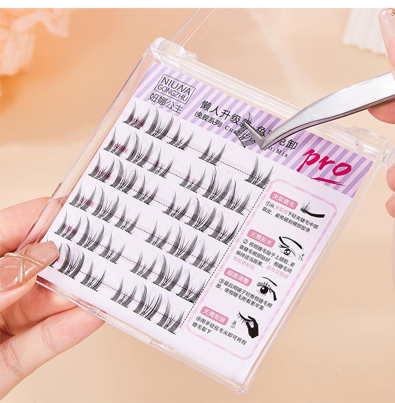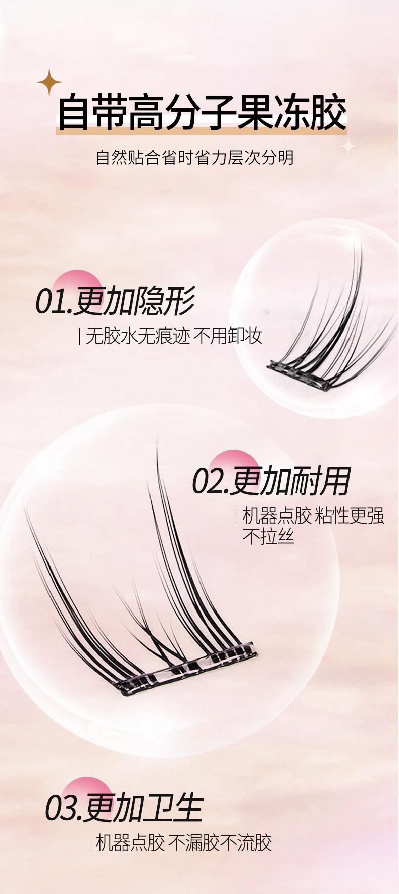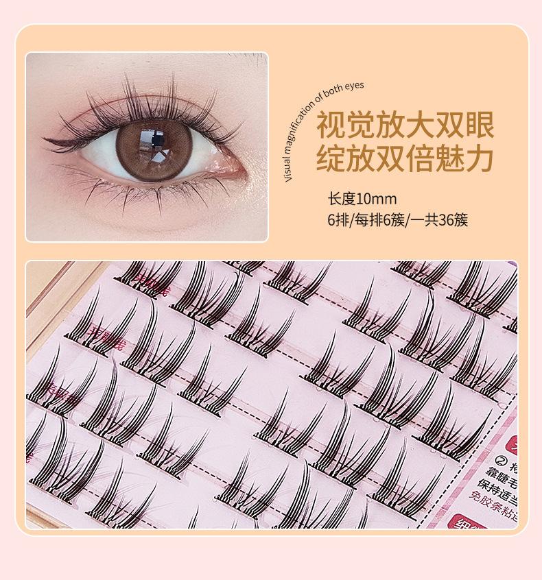 Pestañas postizas sin pegamento Pure Desire Cat Elf, un solo grupo, segmentadas, de simulación natural, de tallo fino, gruesas y rizadas, para mujer