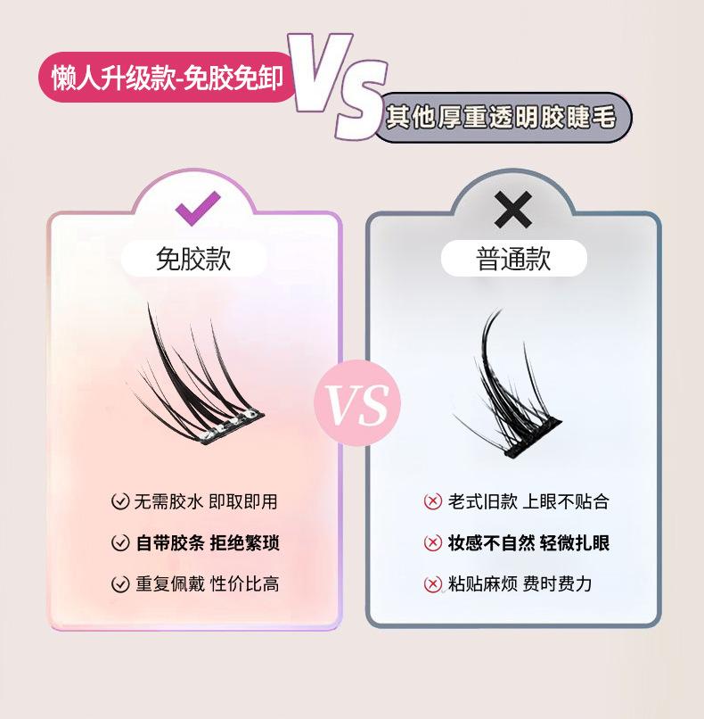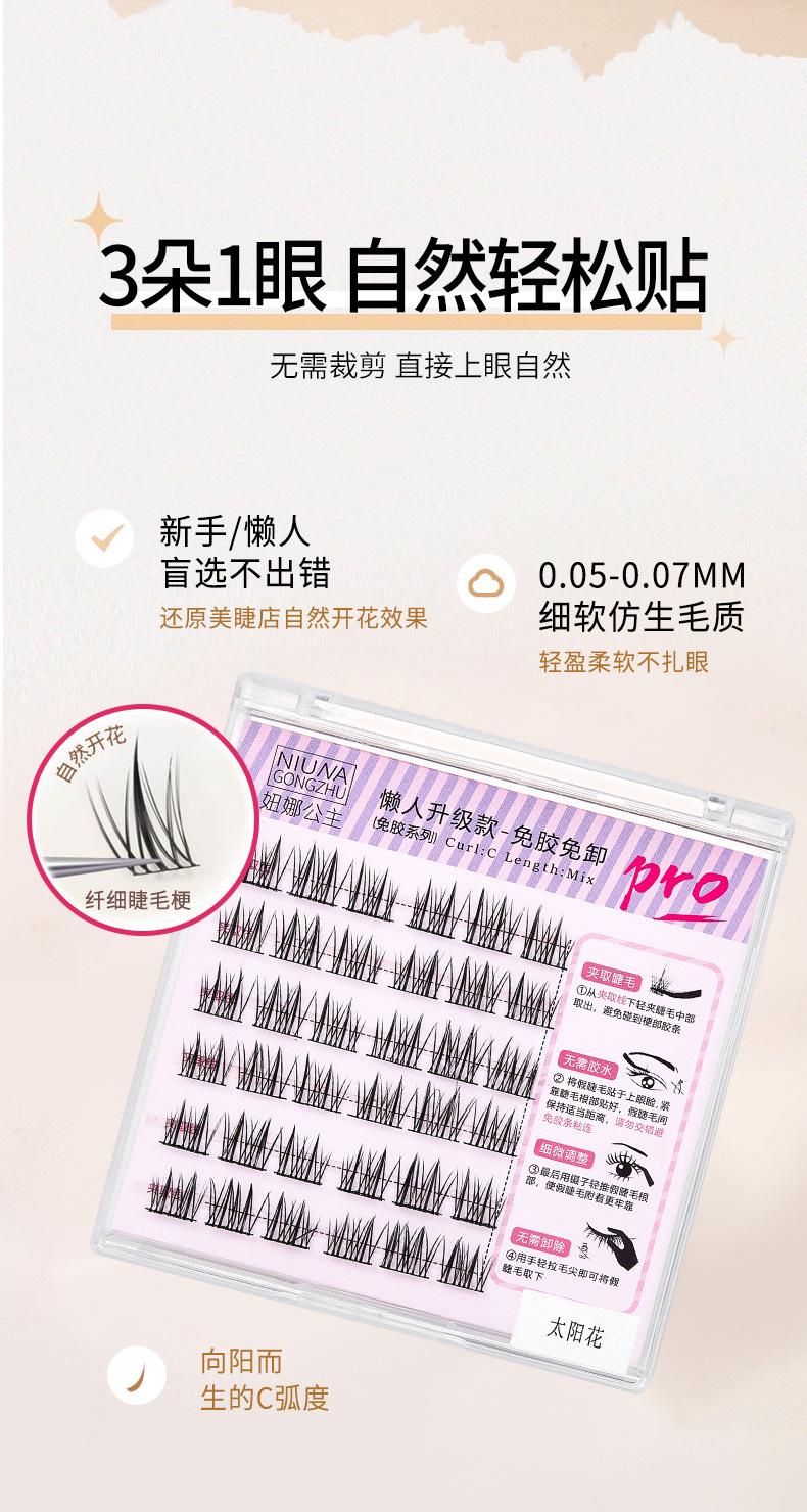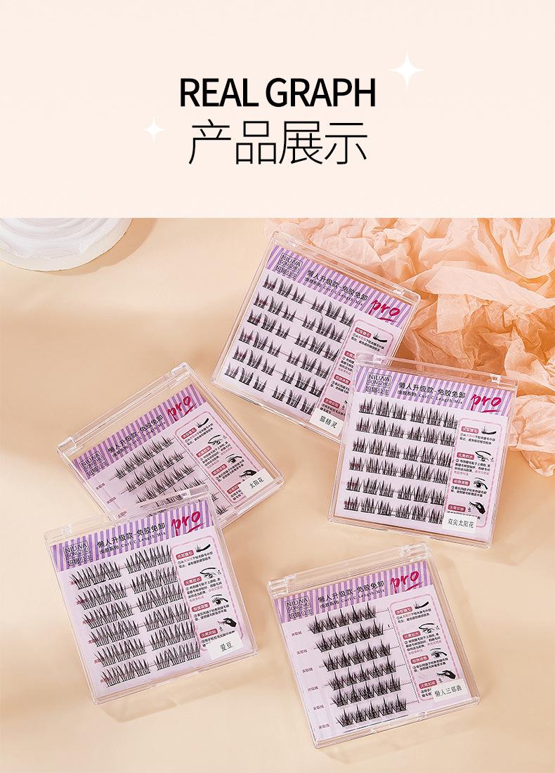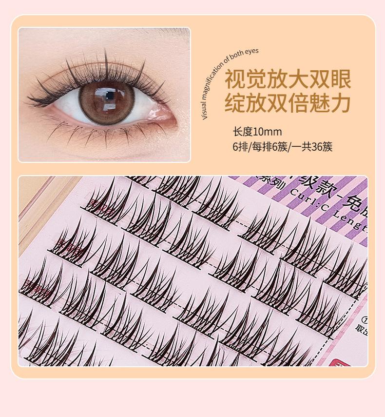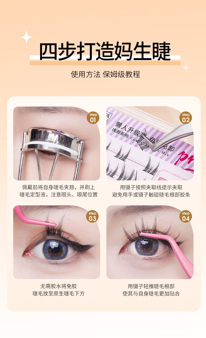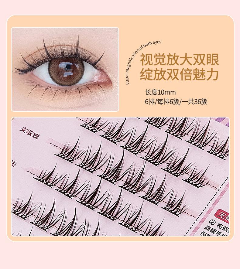 Pestañas postizas sin pegamento Pure Desire Cat Elf, un solo grupo, segmentadas, de simulación natural, de tallo fino, gruesas y rizadas, para mujer