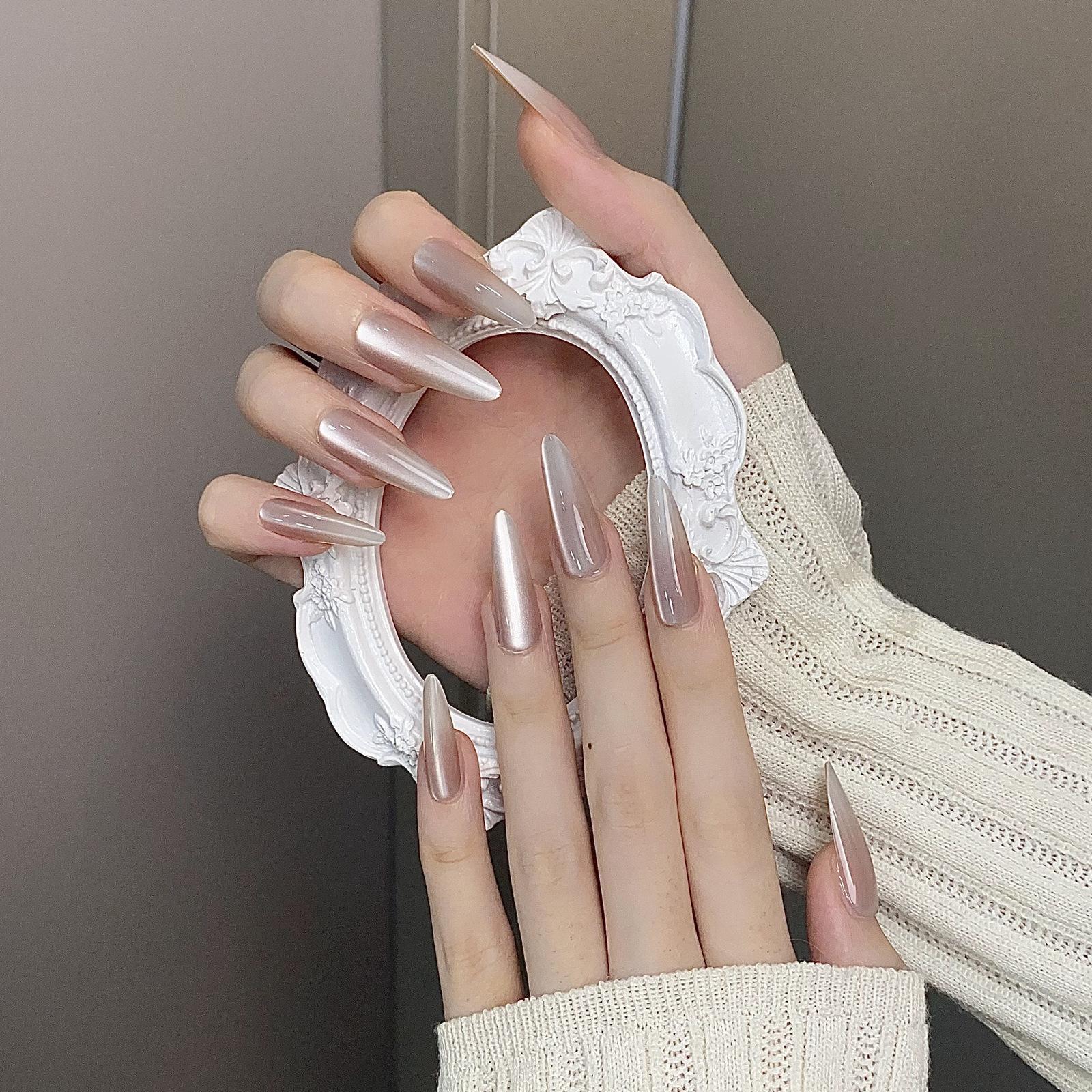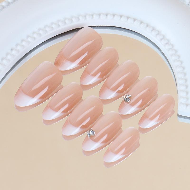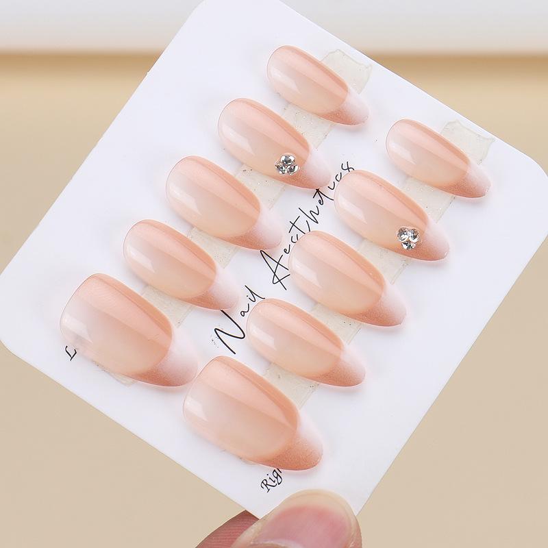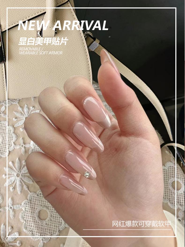 Uñas postizas de armadura de alta calidad hechas a mano, pieza de manicura, borde blanco francés, 30 piezas, código dividido, pedrería, ojo de gato, parche para uñas desmontable