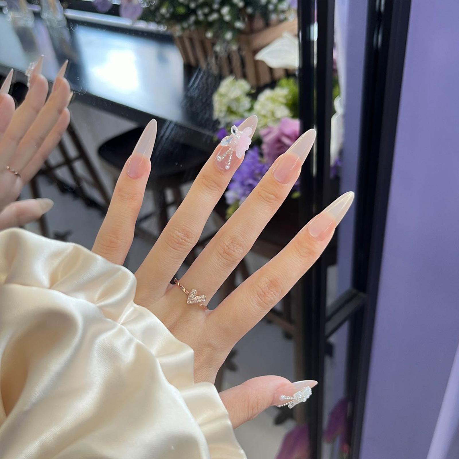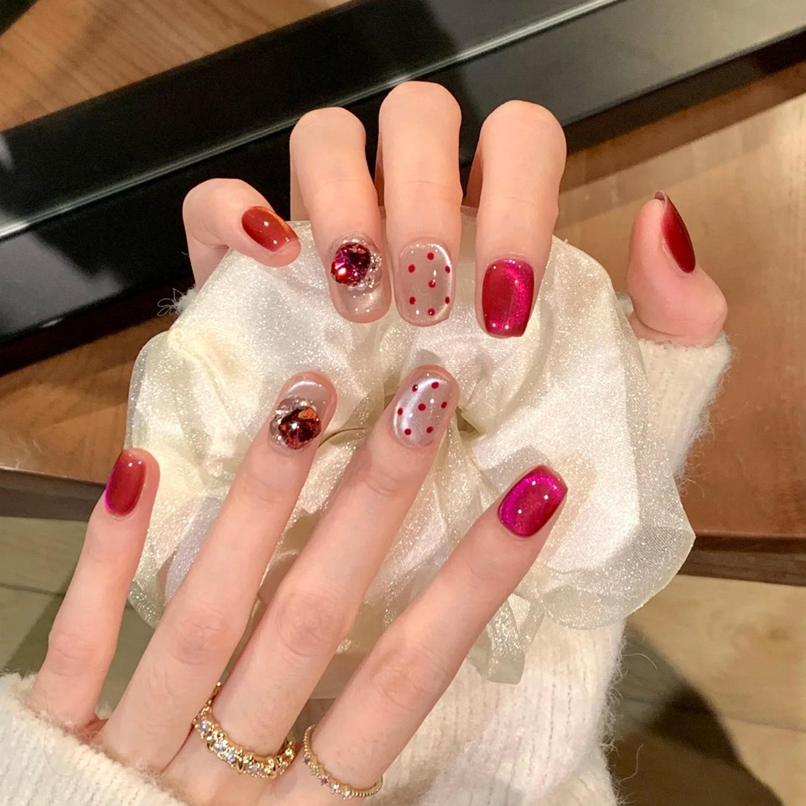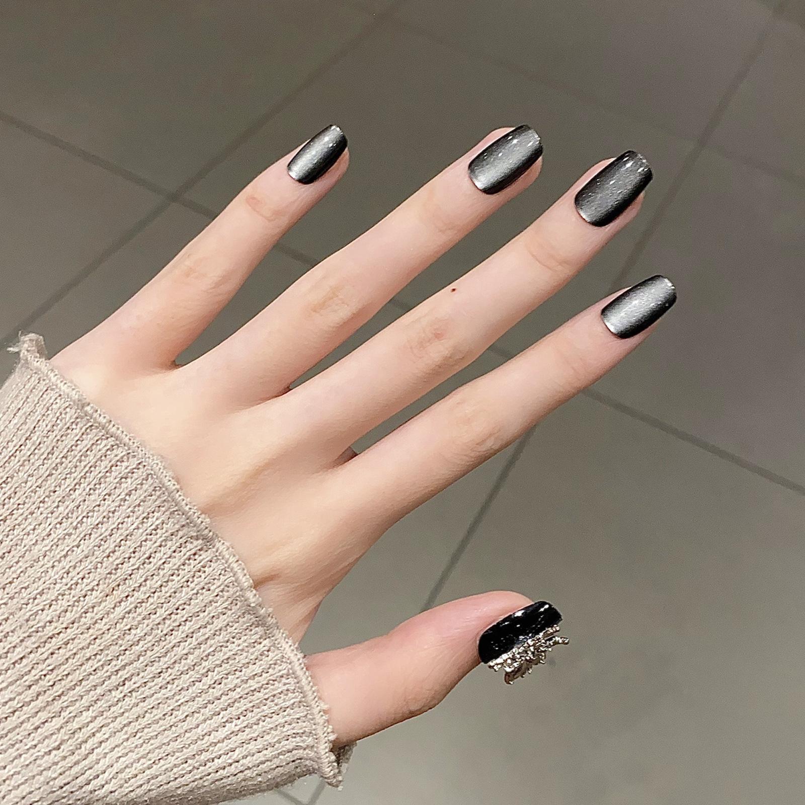 Uñas postizas de armadura de alta calidad hechas a mano, pieza de manicura, borde blanco francés, 30 piezas, código dividido, pedrería, ojo de gato, parche para uñas desmontable