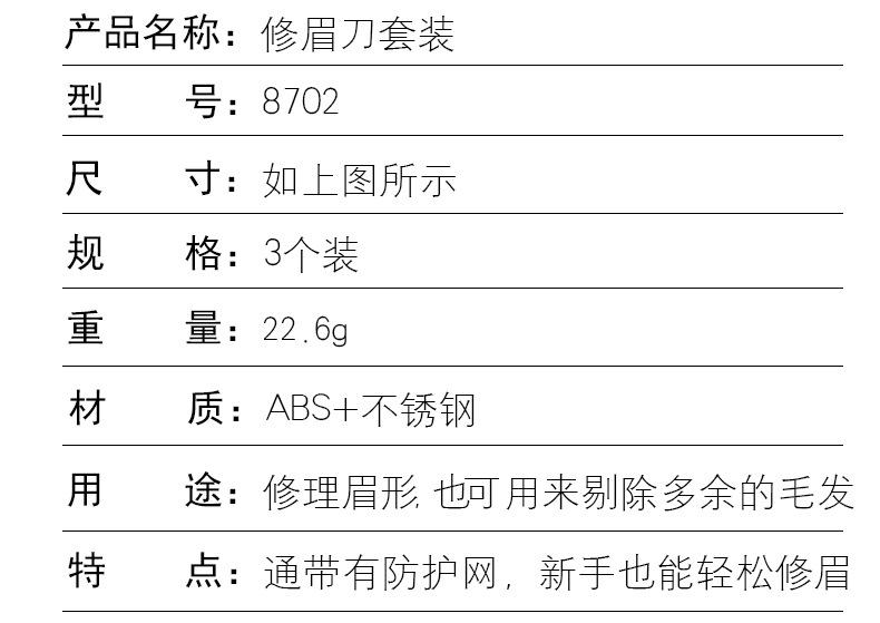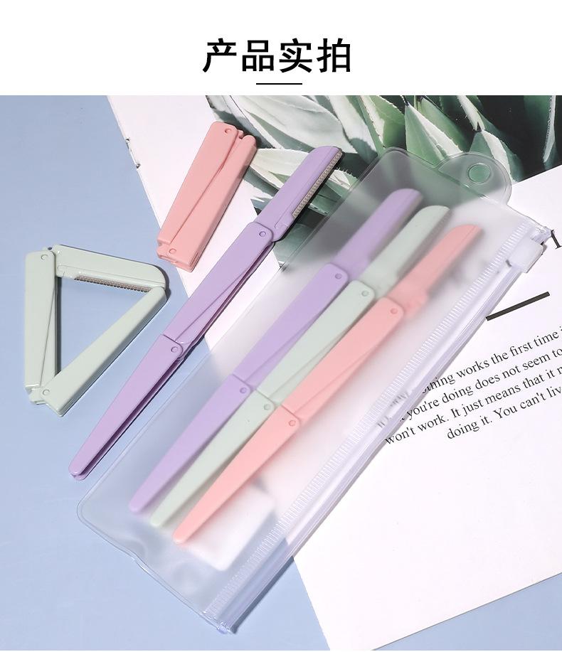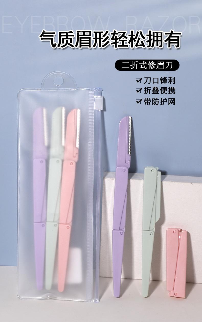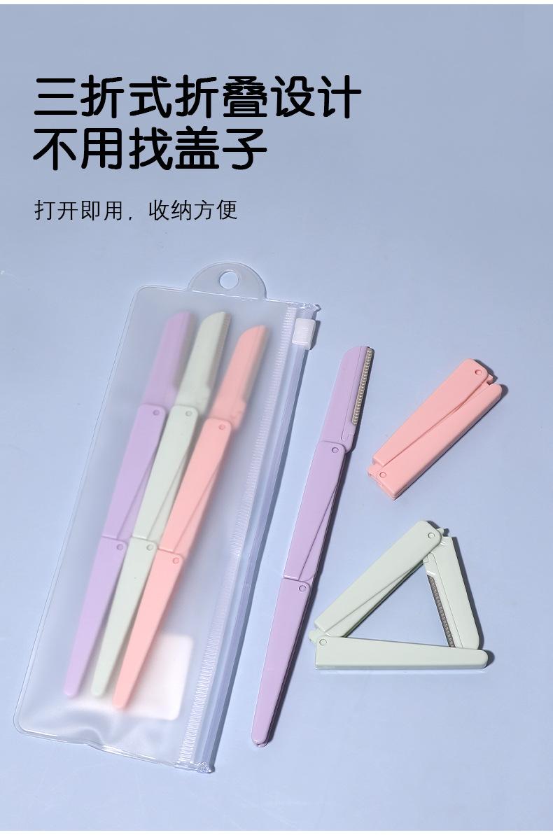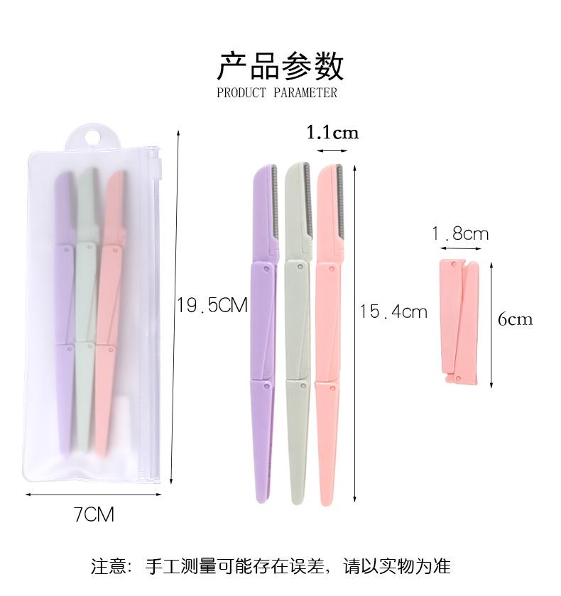 Juego de 3 cuchillos para cejas de tres pliegues con red protectora, cuchilla de acero inoxidable, herramientas de belleza al por mayor