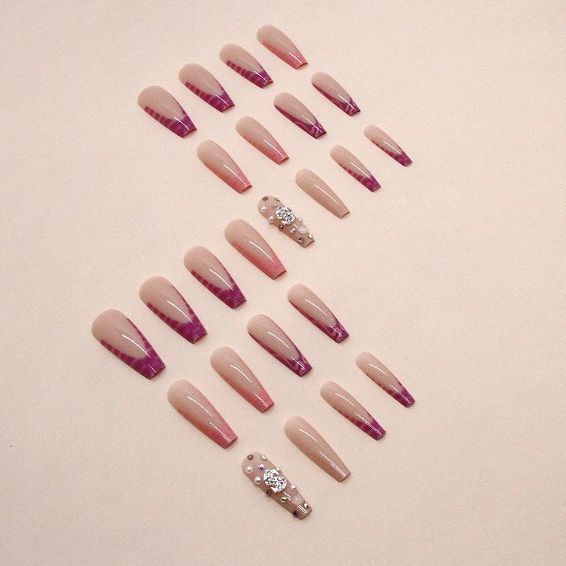 Uñas postizas de diamante de estilo europeo y americano con diseño de ballet largo y sexy de chica morada. Uñas postizas de diamante roto.