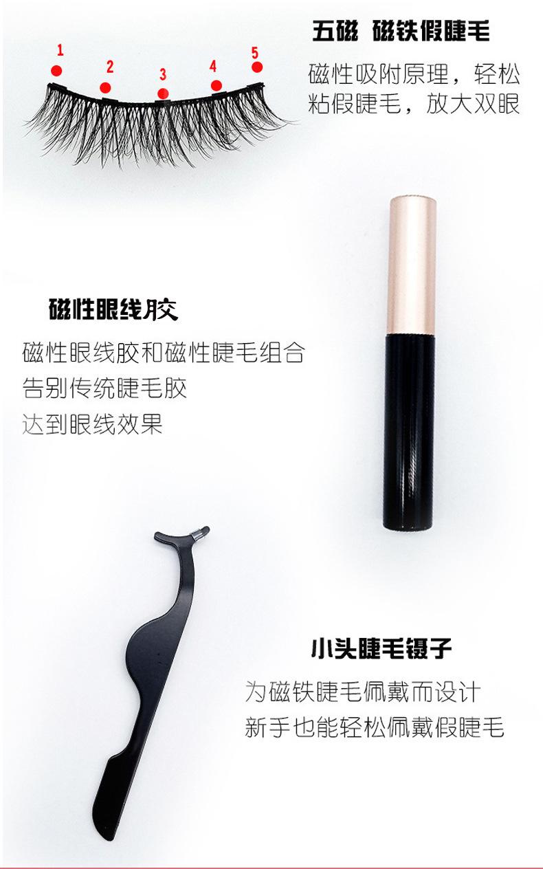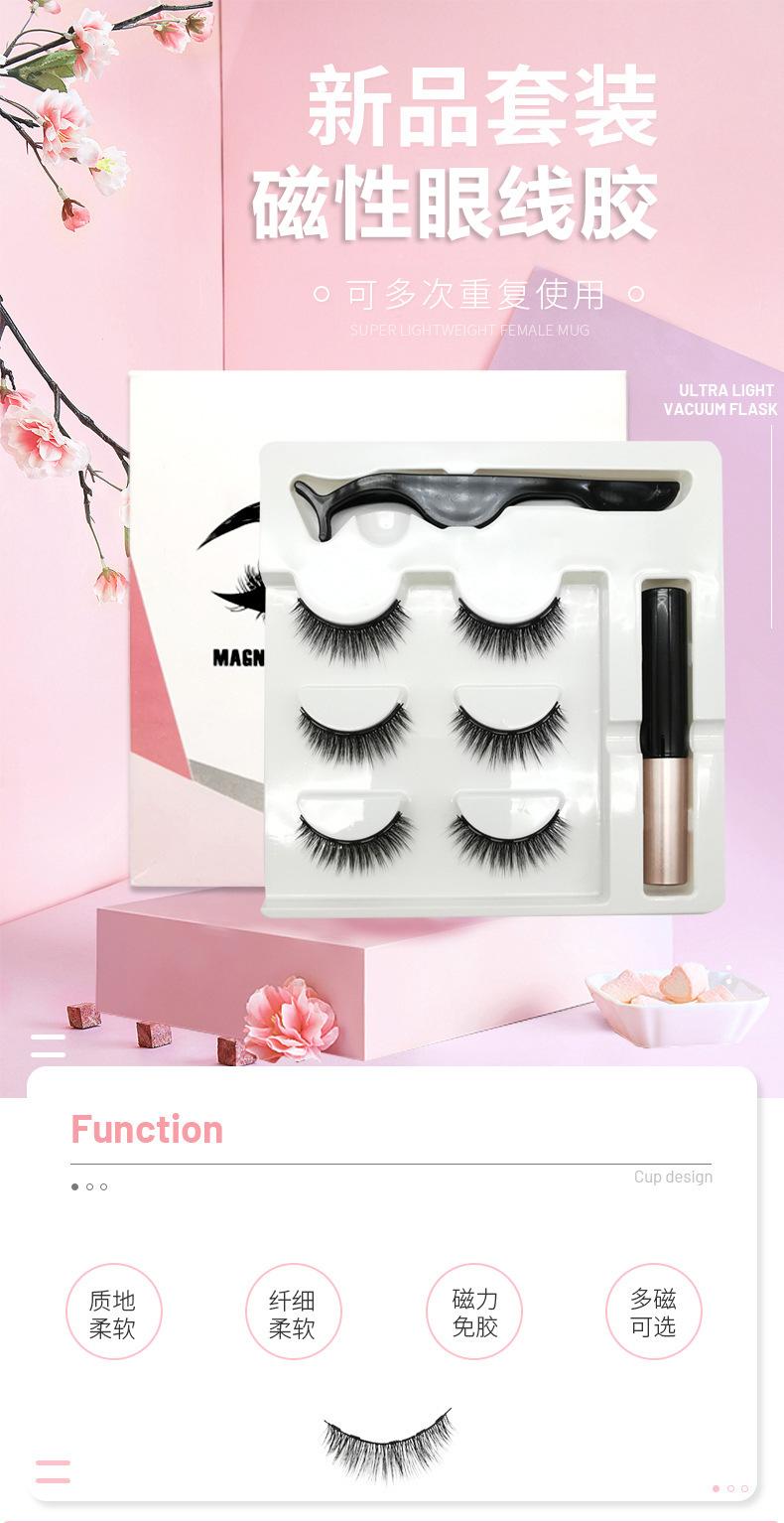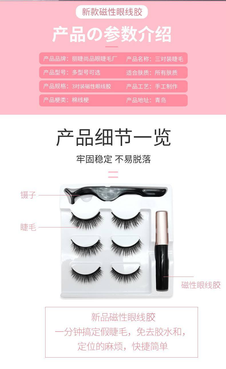 Nuevo producto transfronterizo 3 pares delineador magnético pegamento traje sin pegamento suave tres pares pestañas postizas magnéticas
