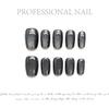 [Arte de uñas semi-artesanal] Uñas postizas cortas de ojo de gato negro con parche terminado desmontable al por mayor