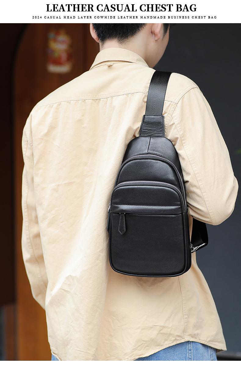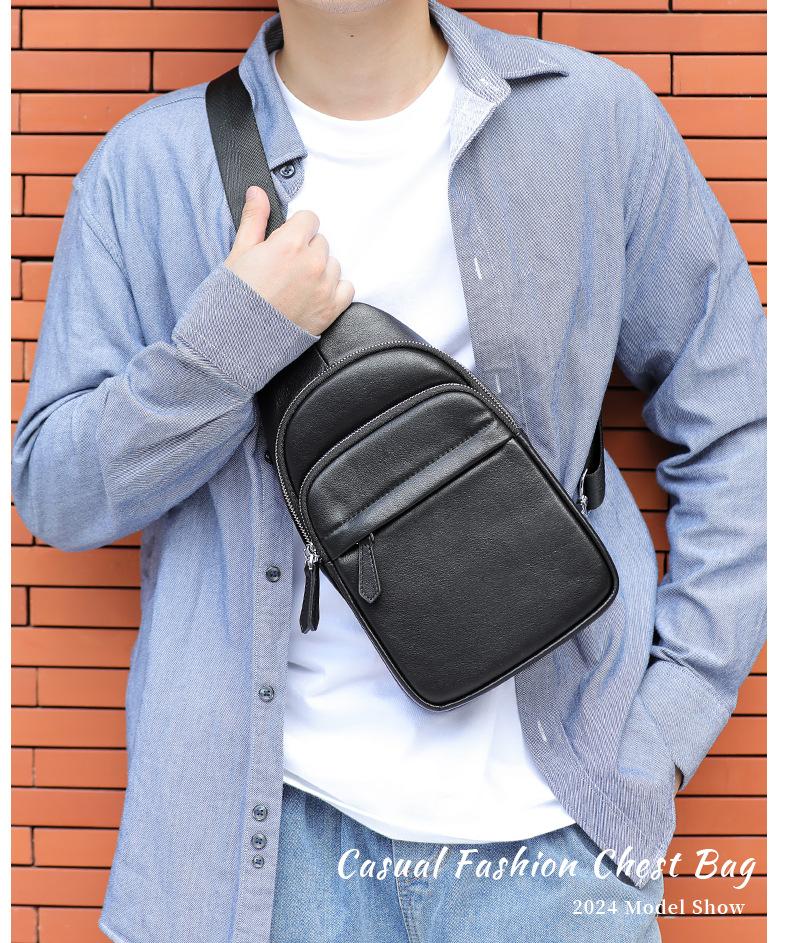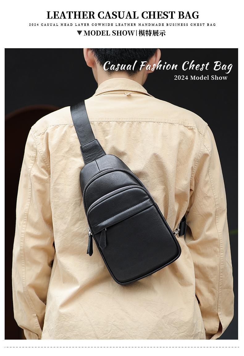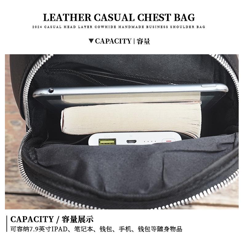 Bolso de pecho de moda para hombre, de piel auténtica, de gran capacidad, para deportes de ocio, bandolera de hombro, bolso de pecho de piel de primera capa para hombre, venta al por mayor