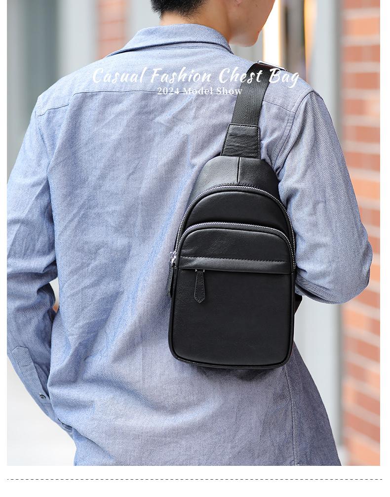 Bolso de pecho para hombre, de piel auténtica, estilo coreano, informal, de piel de vaca, tipo mensajero, mochila pequeña, a la moda, novedad de 2022
